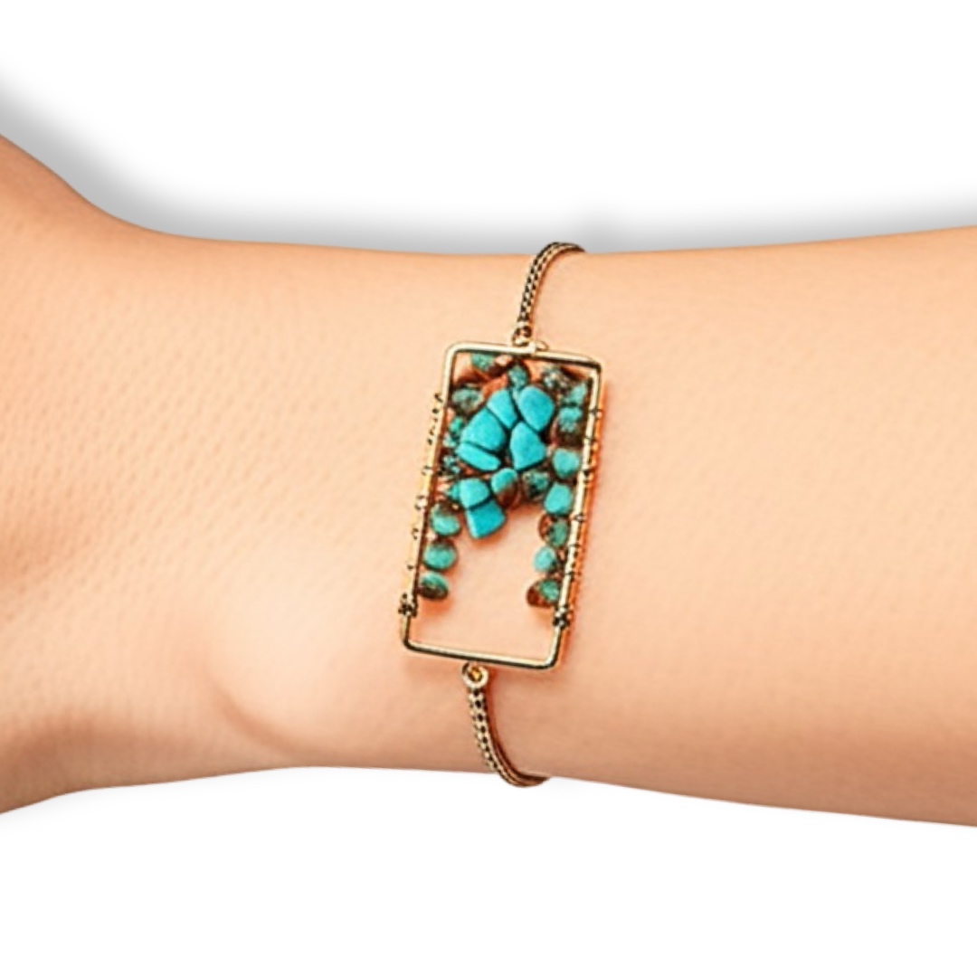 - עם מלבן מעוטר באבני טורקיז כחולות