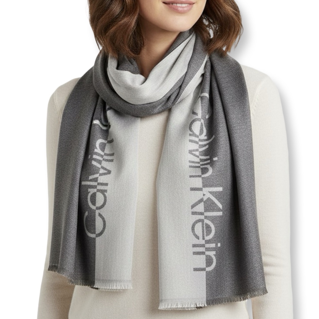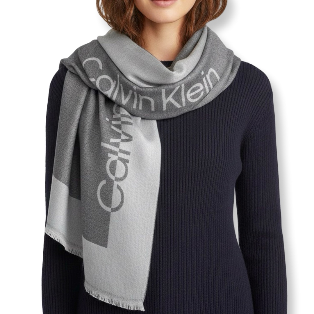 - צעיף אופנתי לוגו אפור כהה מבית המותג “קלוין קליין “