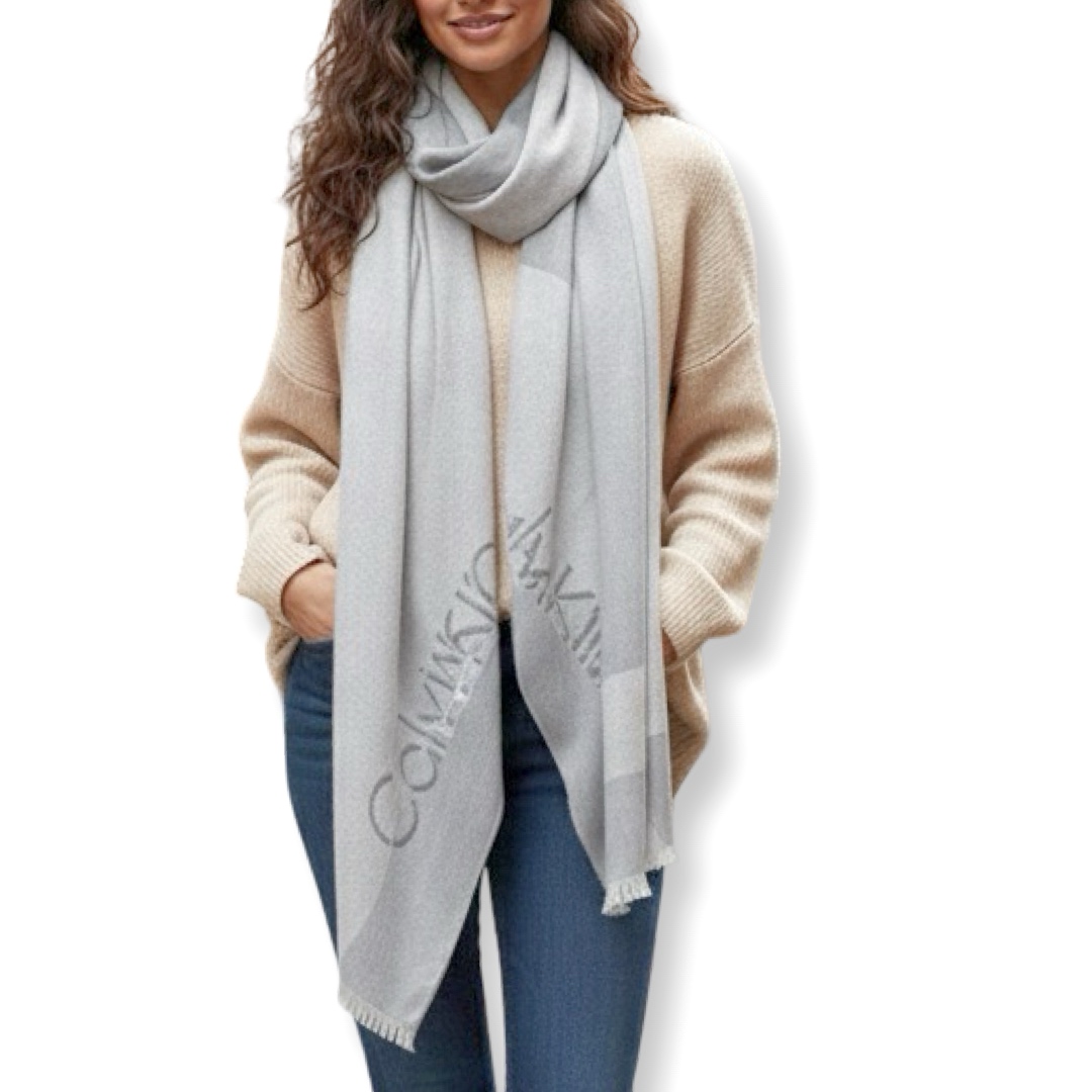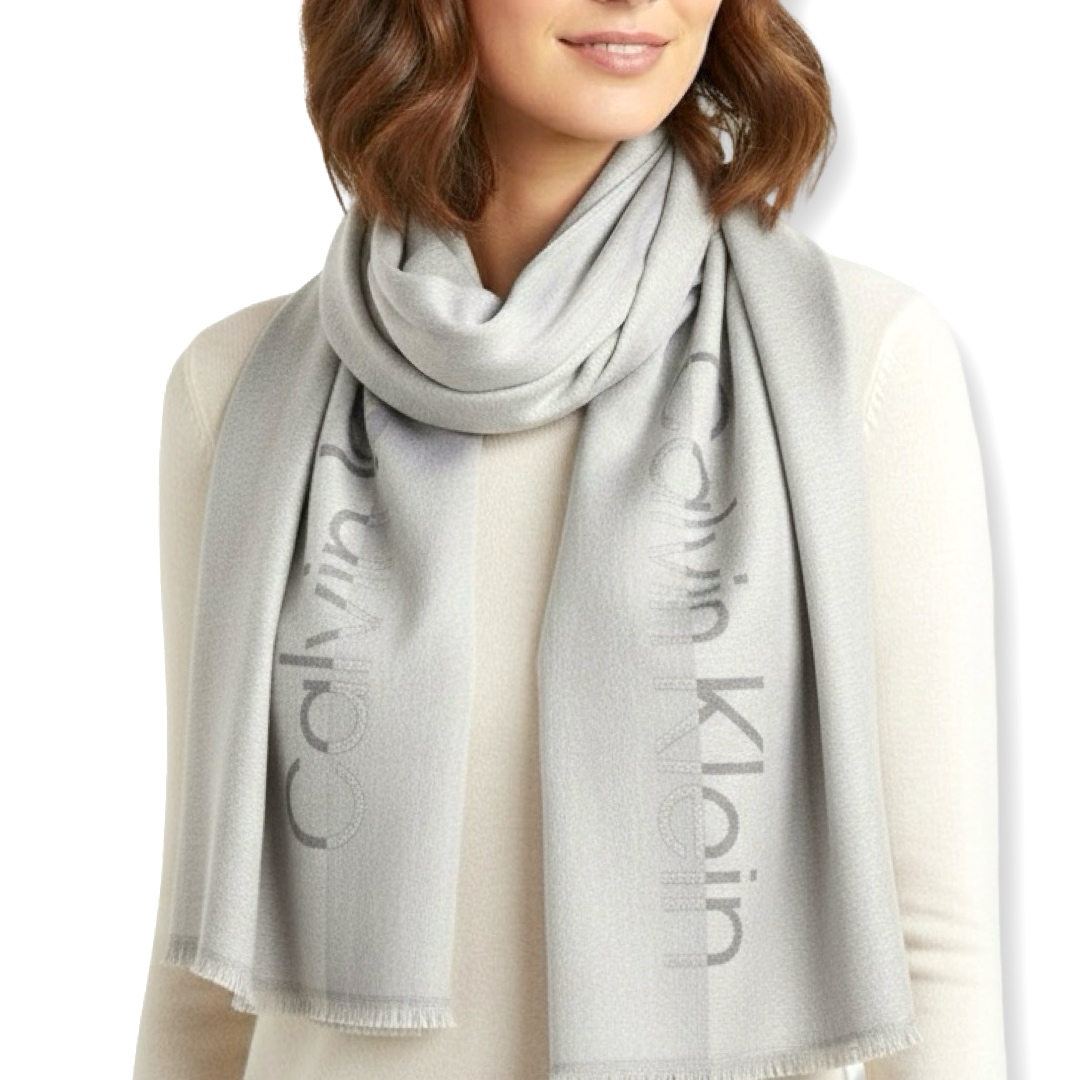 - צעיף אופנתי לוגו אפור מבית המותג “קלוין קליין “