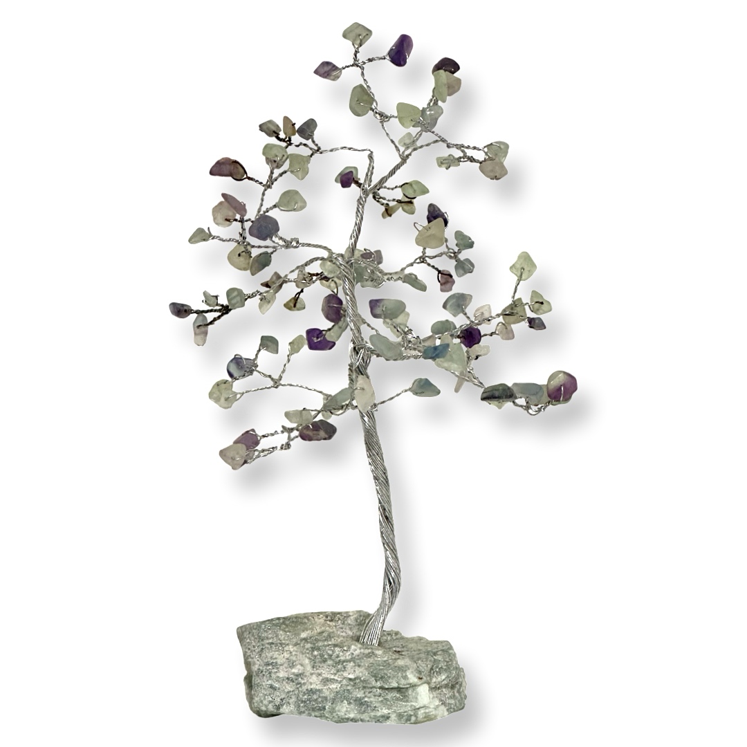 - עץ משובץ באבני פלורייט טבעיות, המחוברות לענפים דמויי תיל היוצאים מבסיס עץ