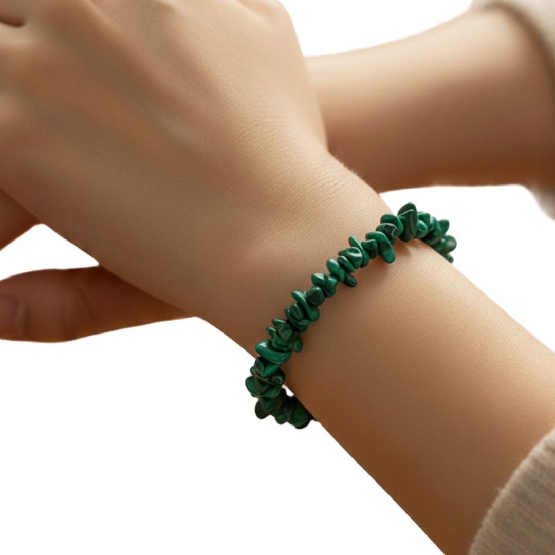 - צמיד אבני מלכית גולמיות, המשלב גווני ירוק