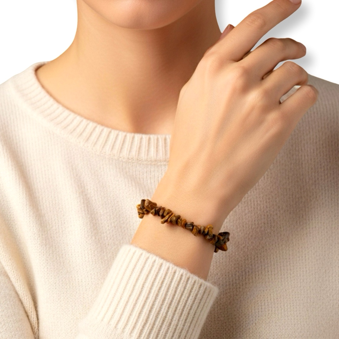 - צמיד אבנים גולמיות של טייגר איי, בגוונים חמים המעניקים כוח, אומץ והגנה