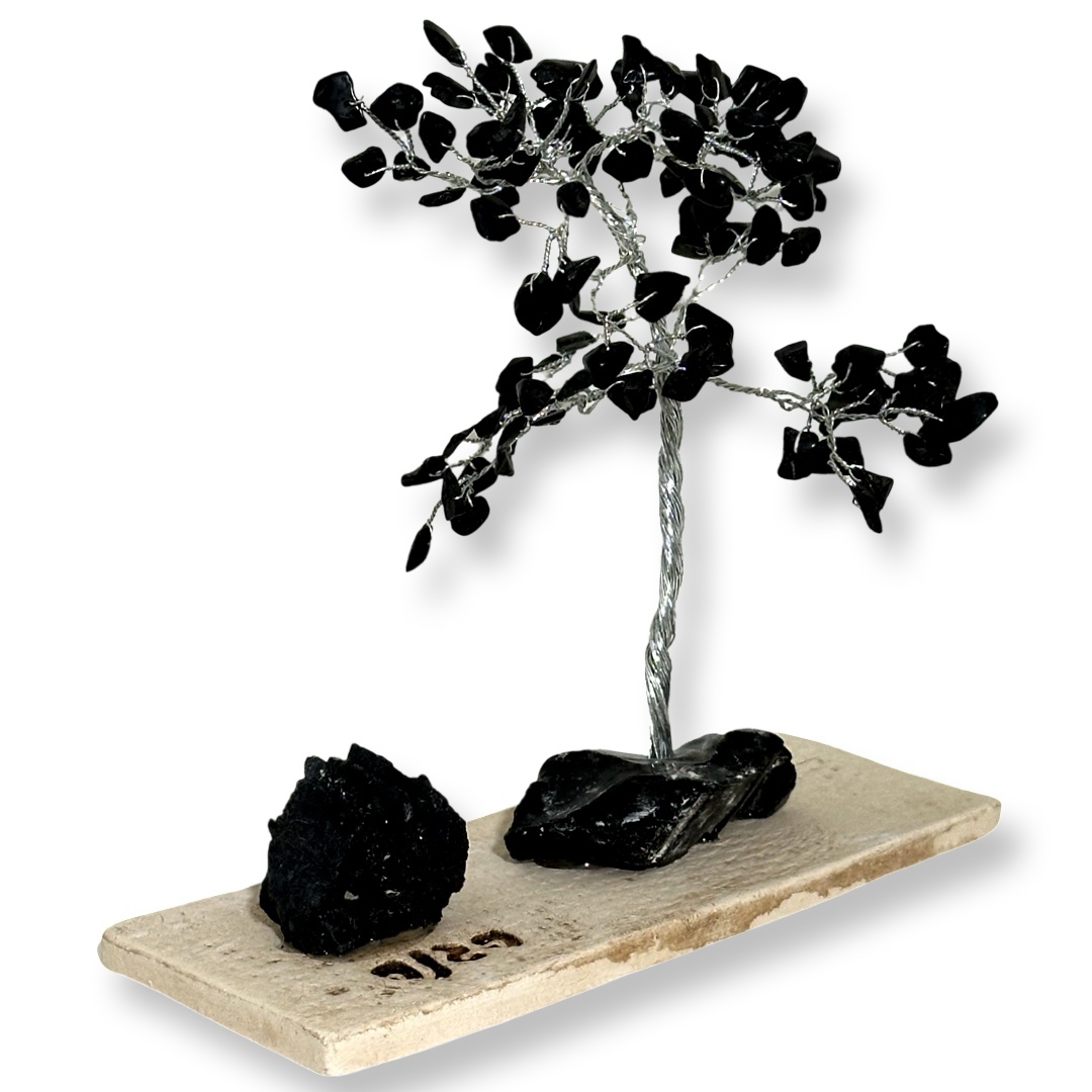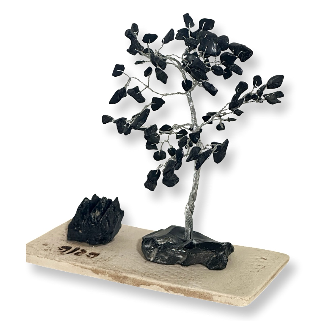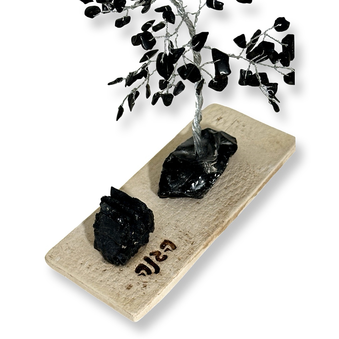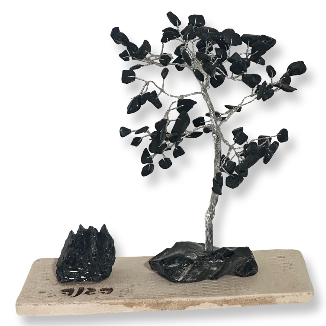 - עץ משובץ באבני טורמלין טבעיות, המחוברות לענפים דמויי תיל היוצאים מבסיס עץ-
