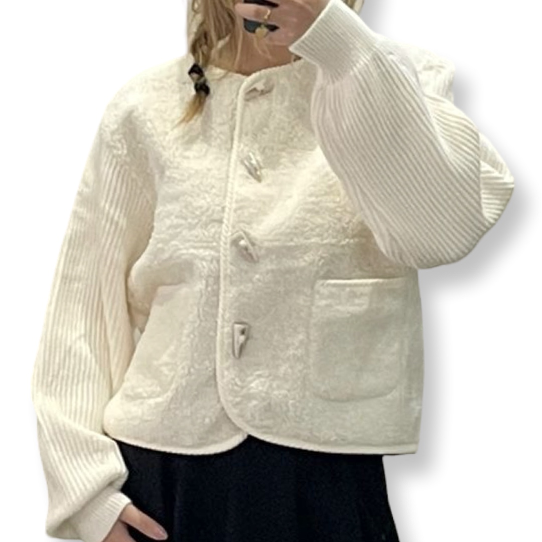 ג'קט-קרדיגן פרוותי בסגנון דאפל כפתורי טוגל צבע אופוויט ג׳וקלייר