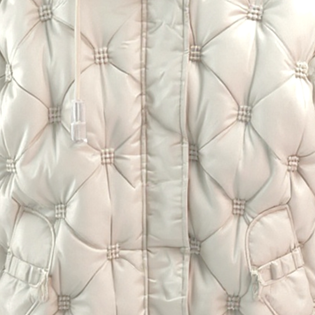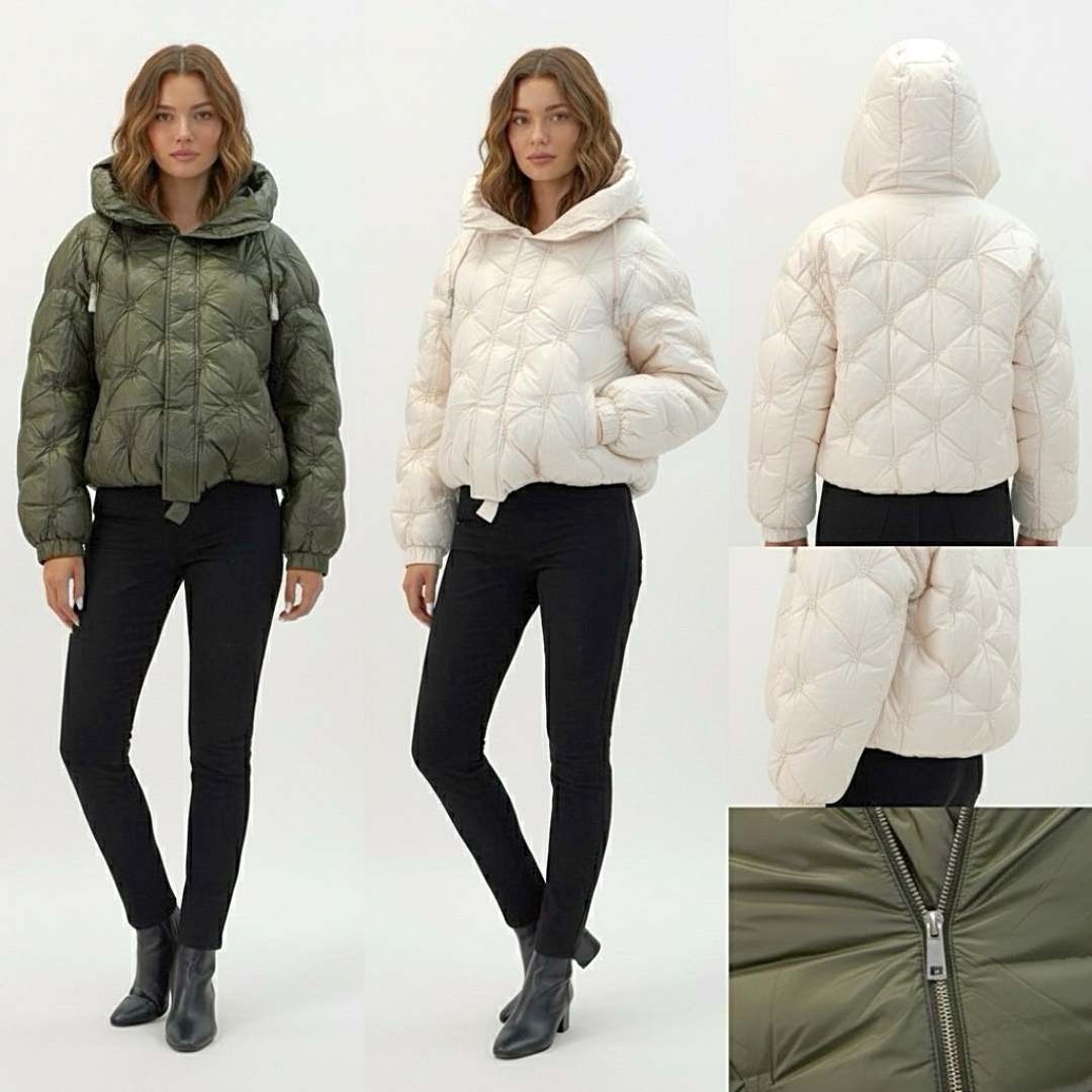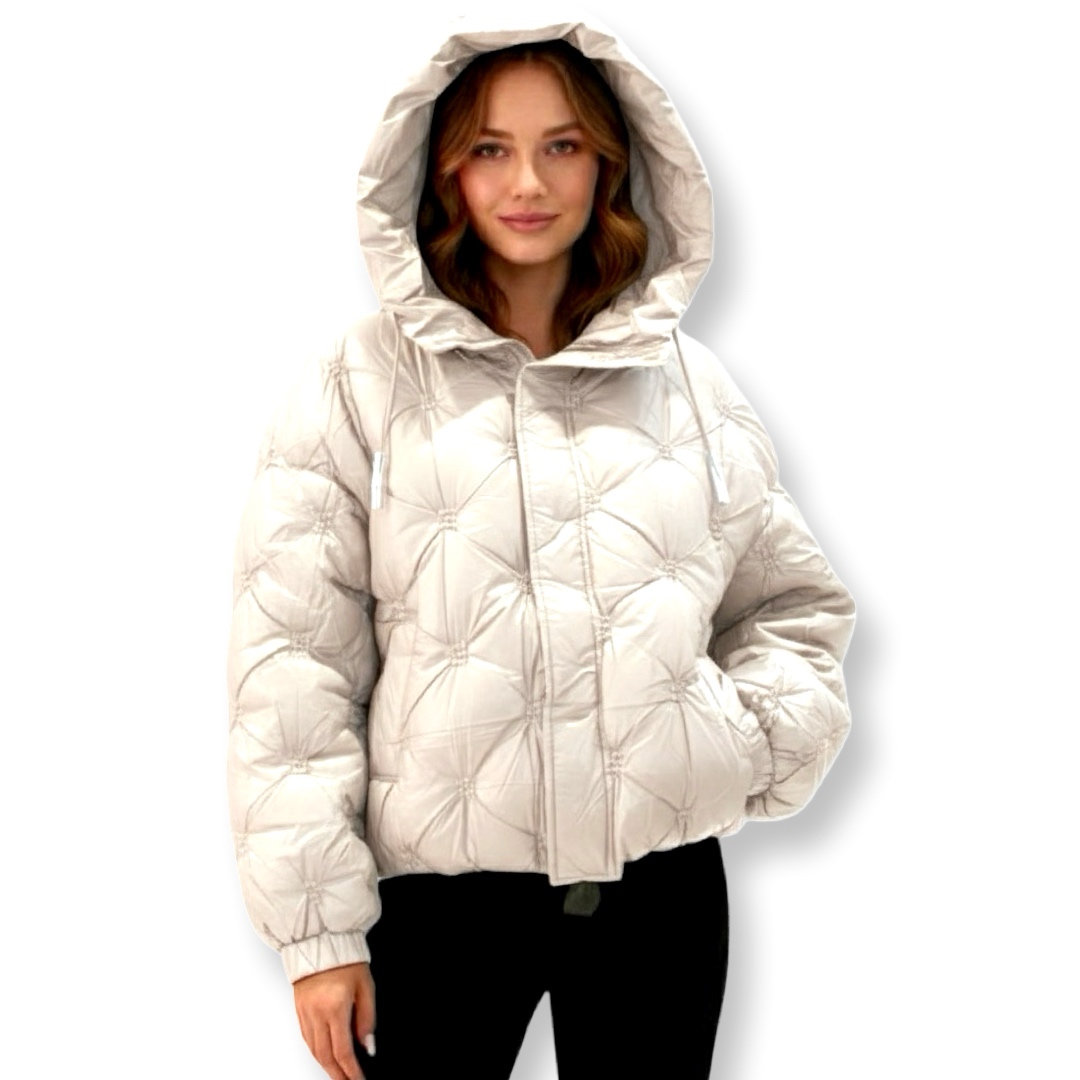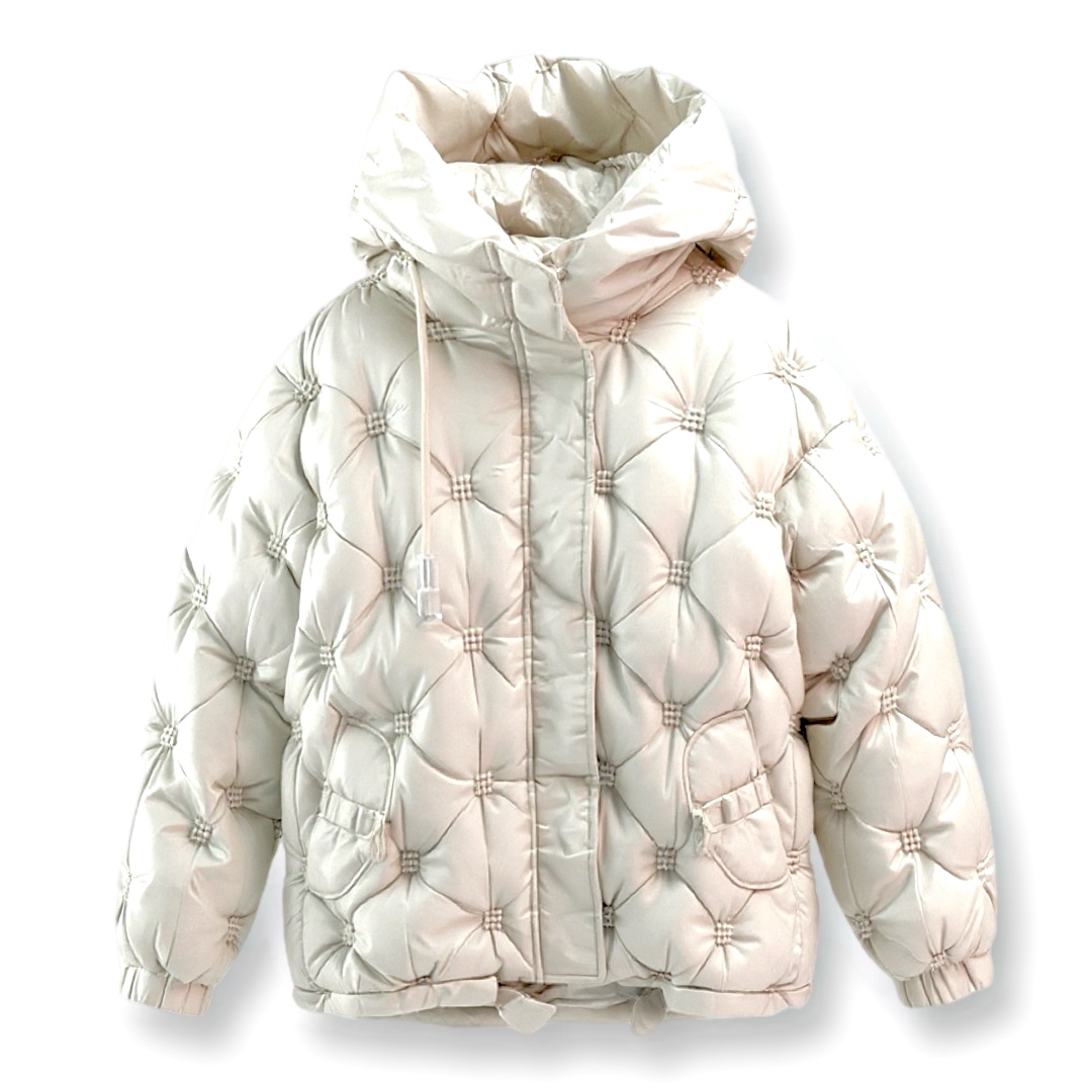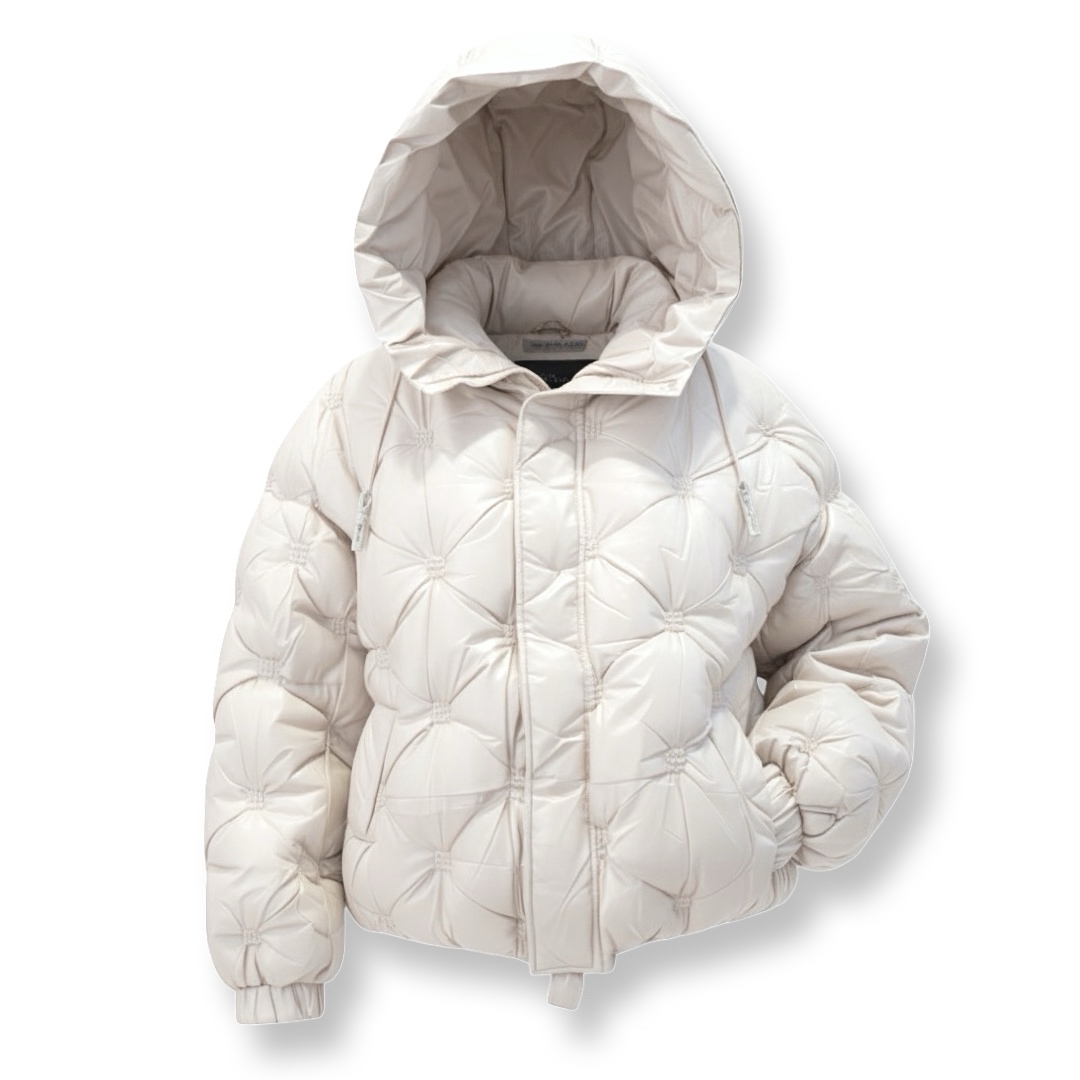 מעיל פוף קווילט מרופד יוקרתי עם קפוצ'ון צבע אופוויט ג׳וקלייר