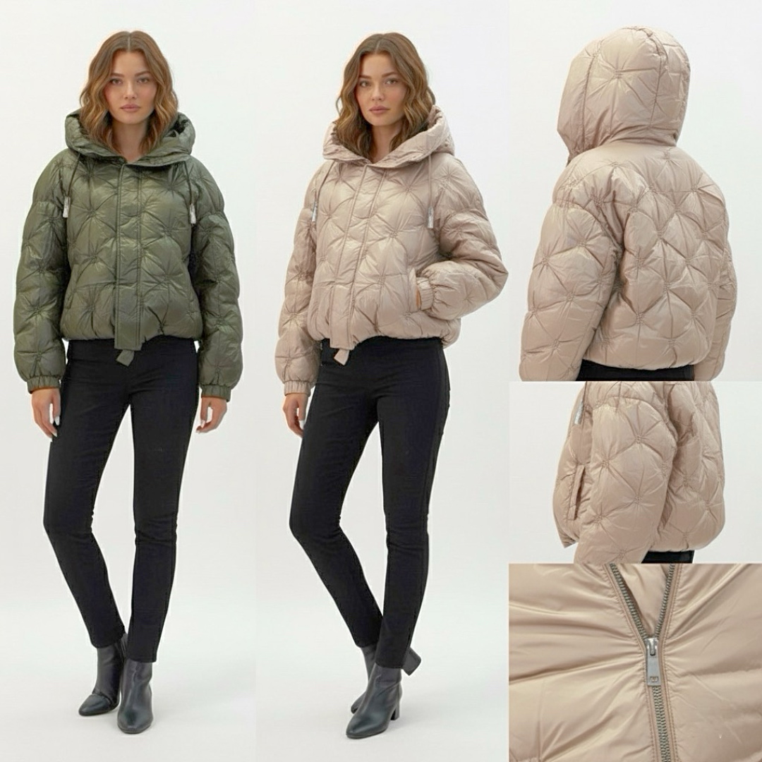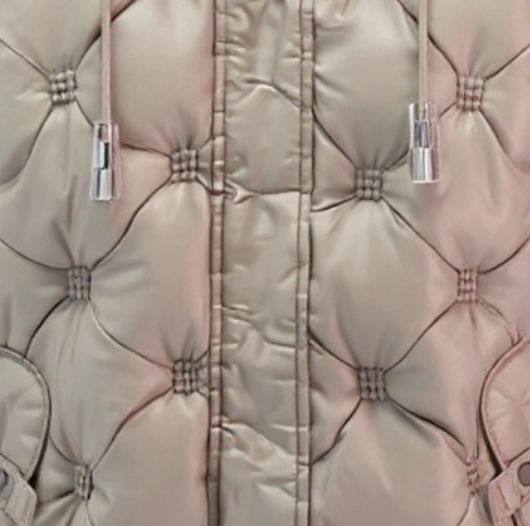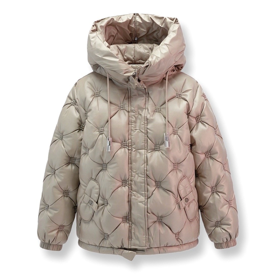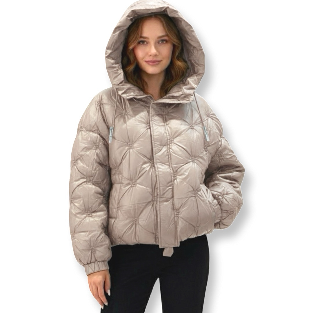 מעיל פוף קווילט מרופד יוקרתי עם קפוצ'ון צבע בז' מטאלי ג׳וקלייר