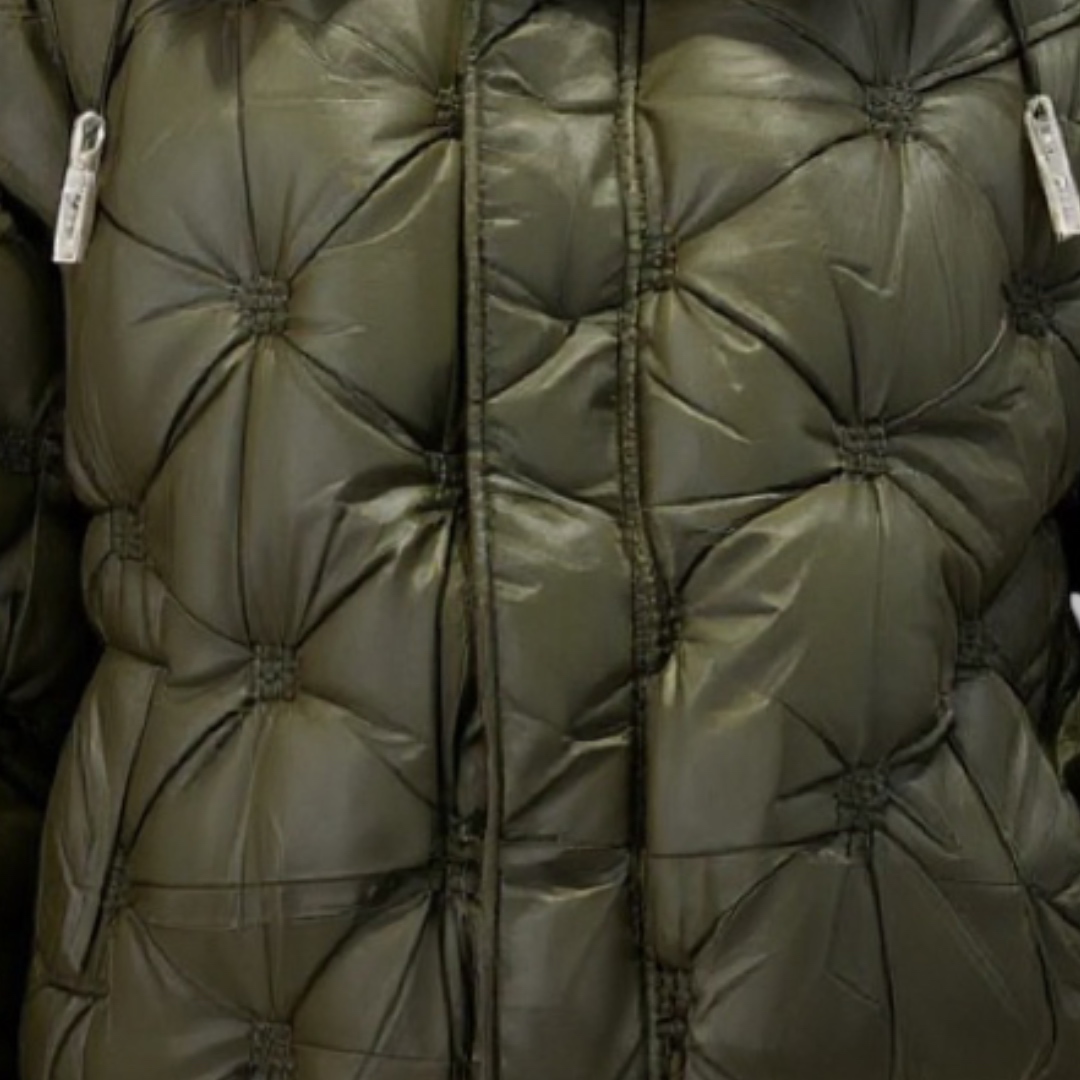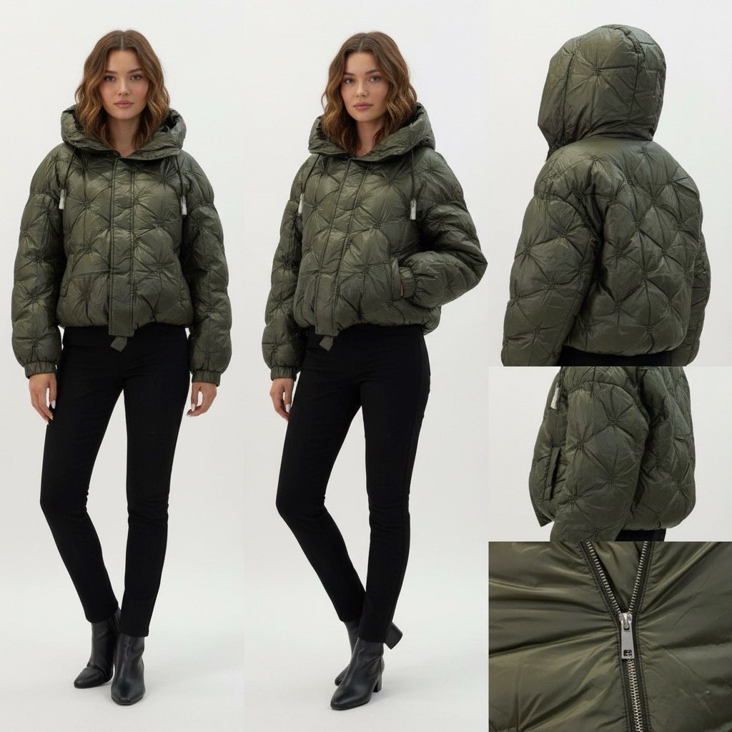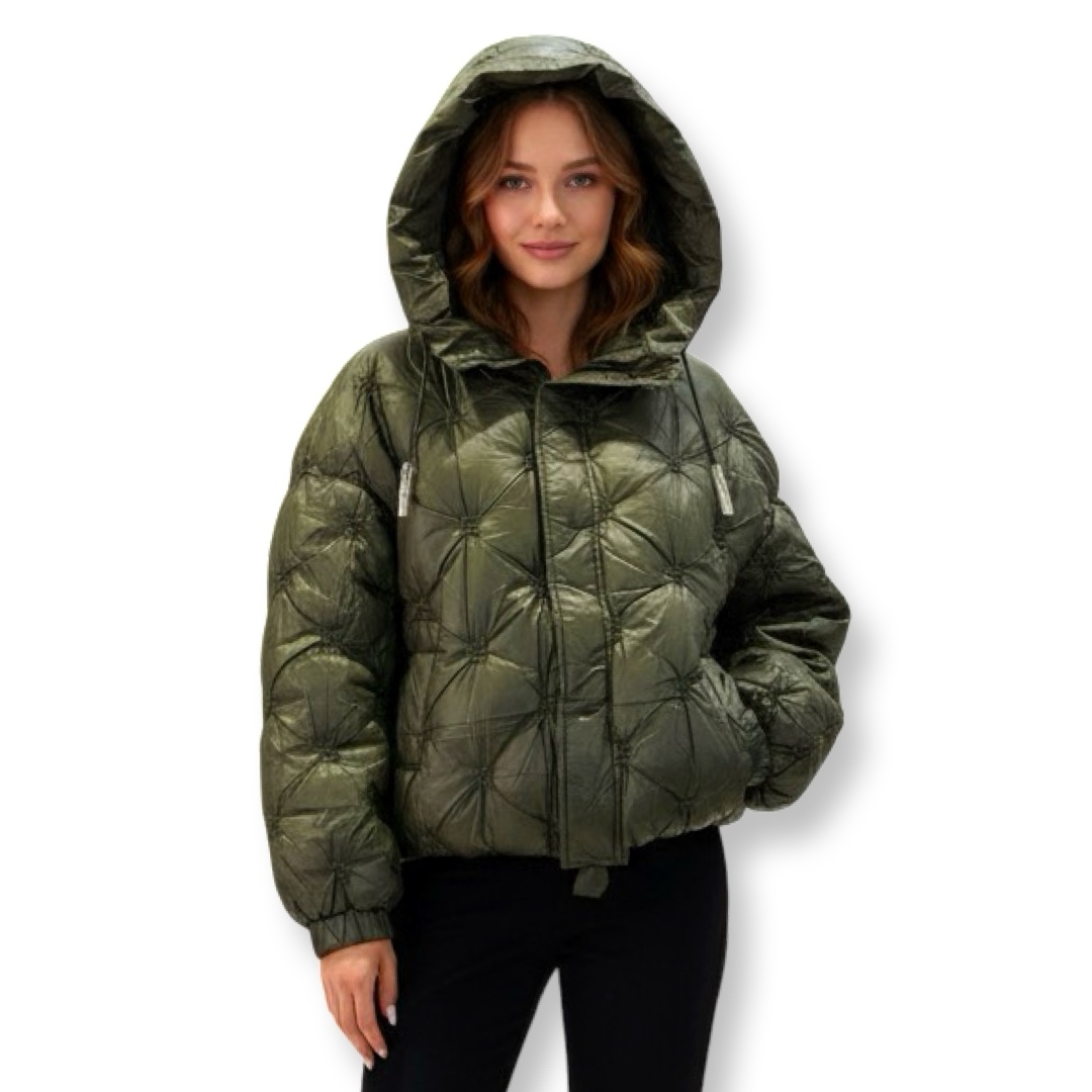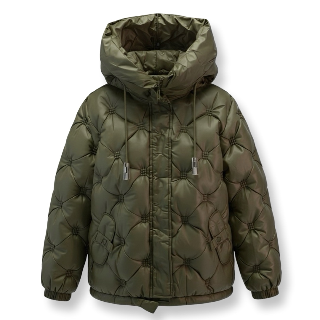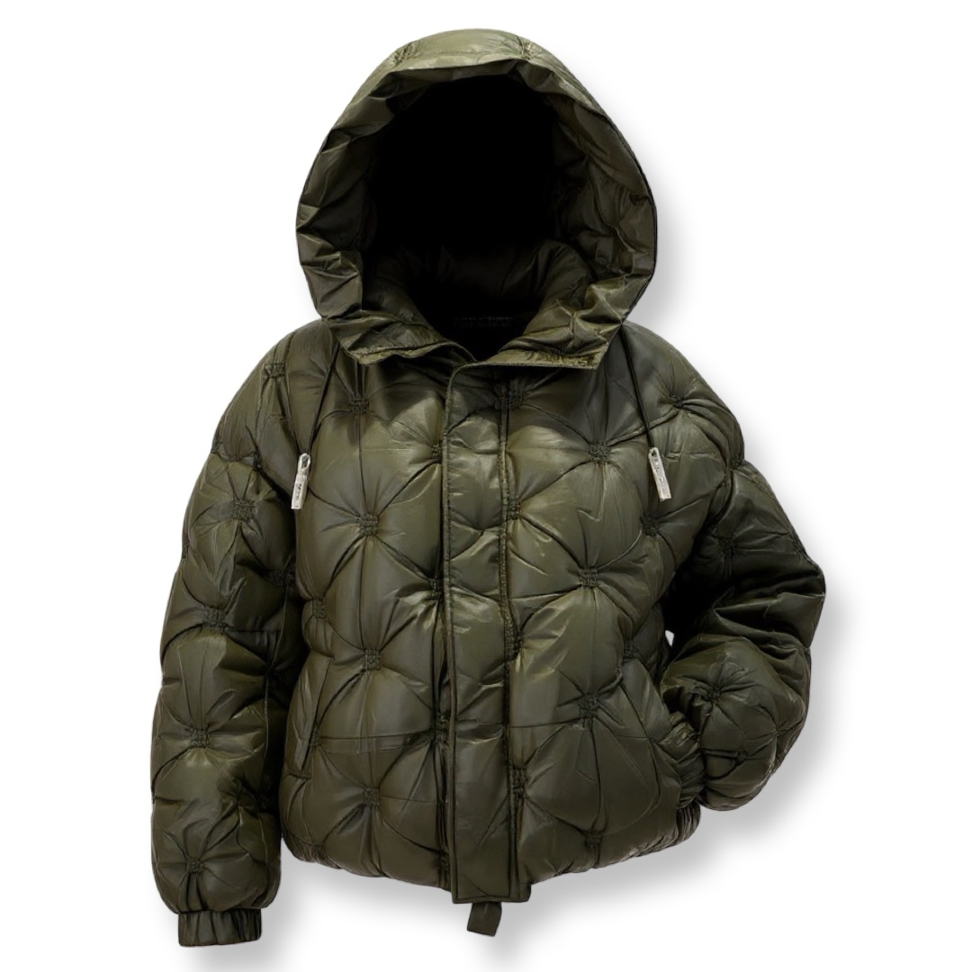 מעיל פוף קווילט מרופד יוקרתי עם קפוצ'ון צבע ירוק זית ג׳וקלייר
