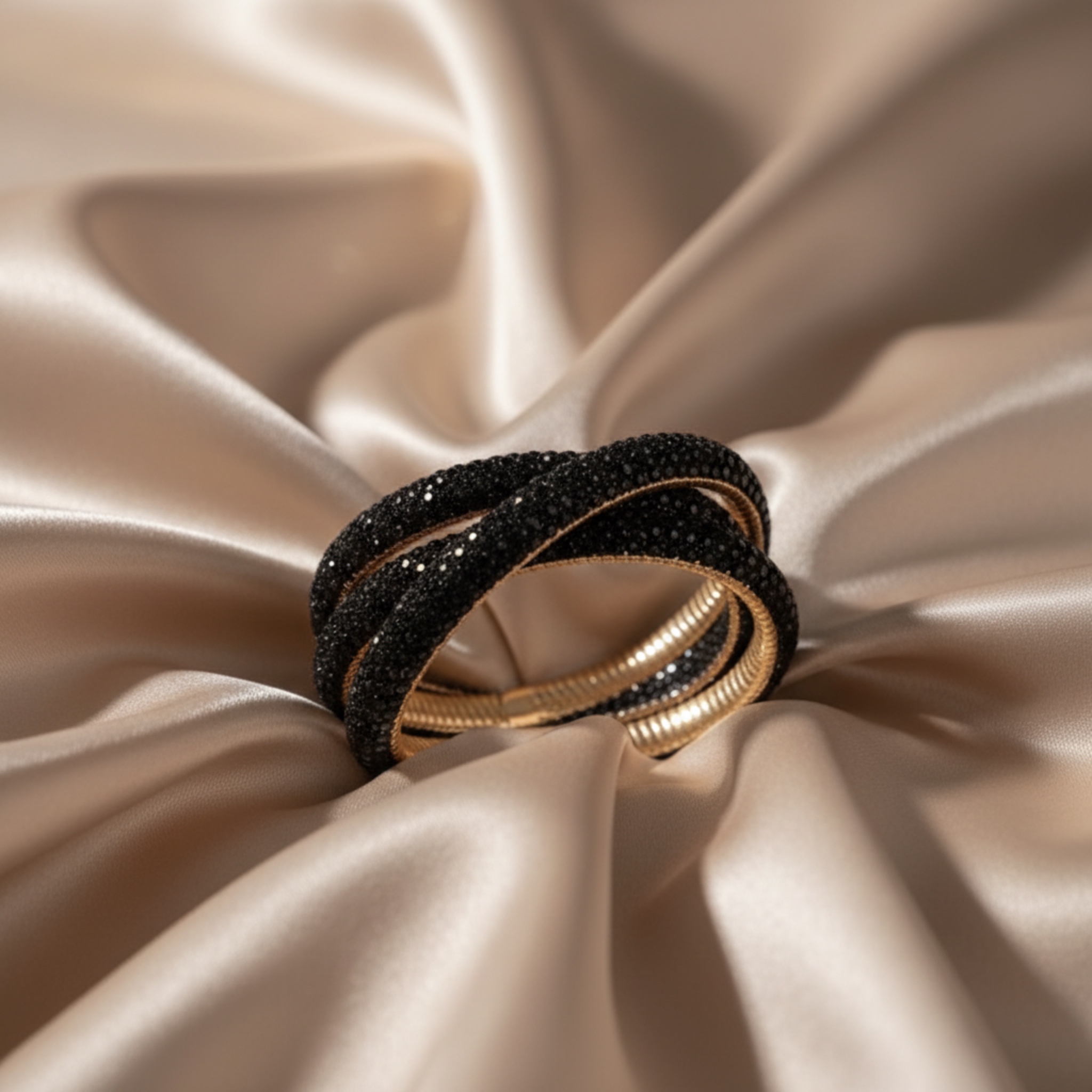 צמיד ספירלה טריו גלאם משובץ קריסטלים וחרוזים שחור ג'ויה