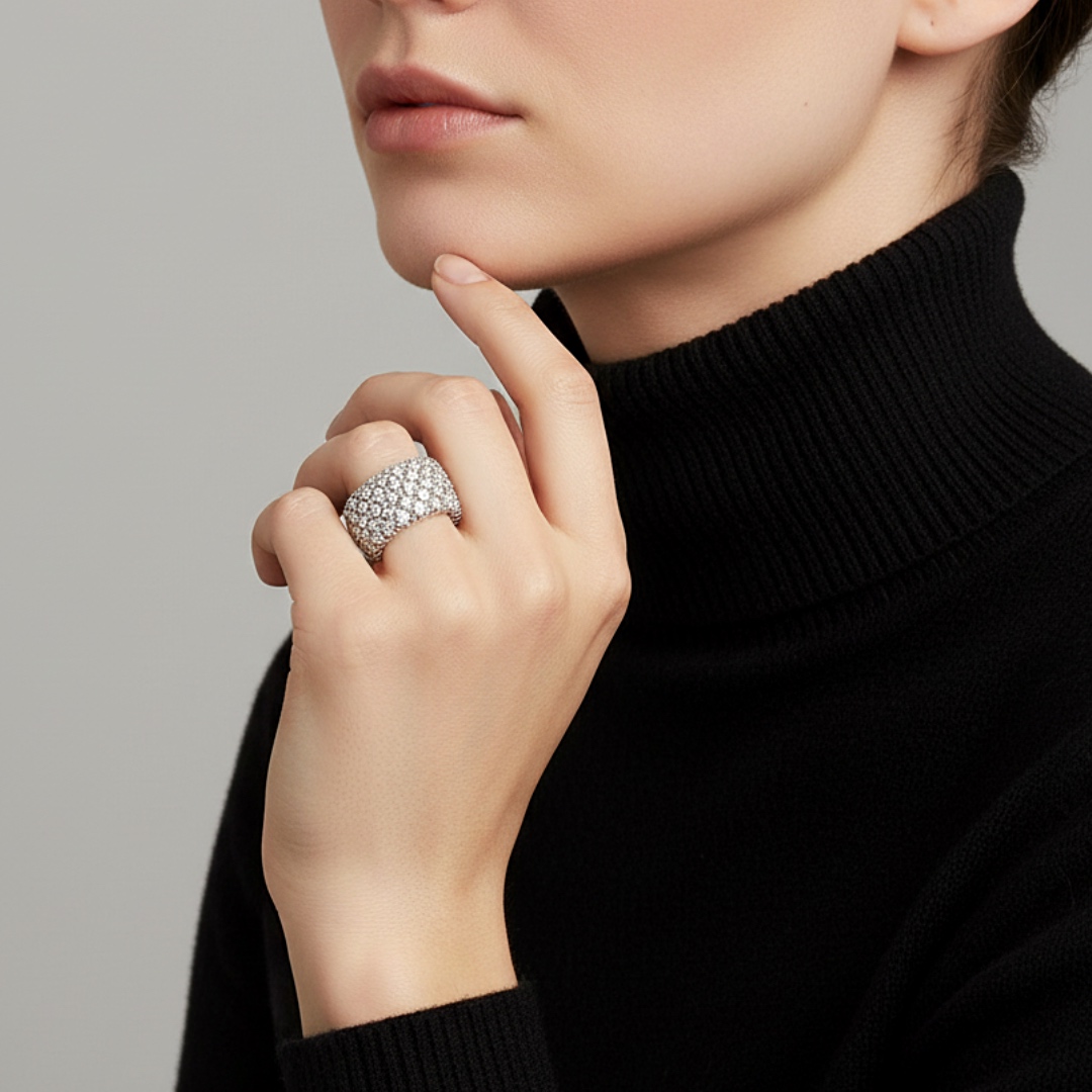 טבעת רחבה רויאל גלאם משובץ קריסטלים צבע כסף ג'ויה