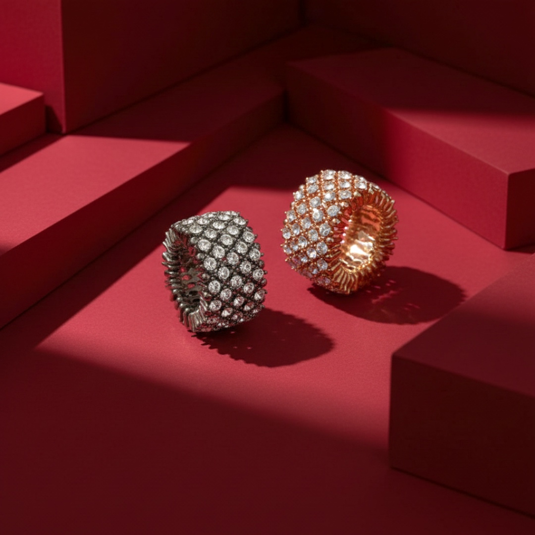 - טבעת רחבה בעיצוב רשת מעוינים סימטרית
