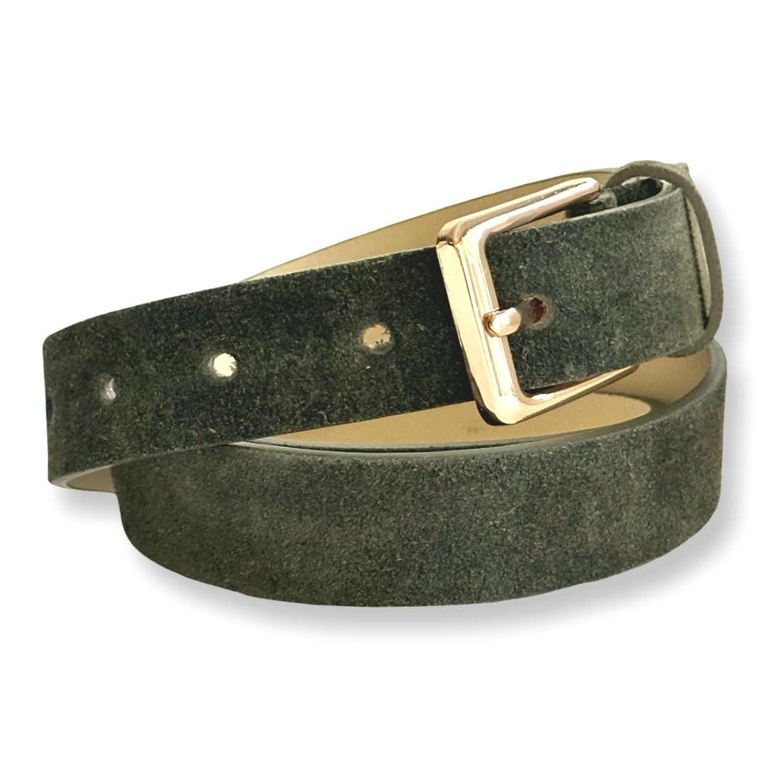 - חגורת עור הפוך קלאסית עם אבזם מוזהב צבע זית ליאלב