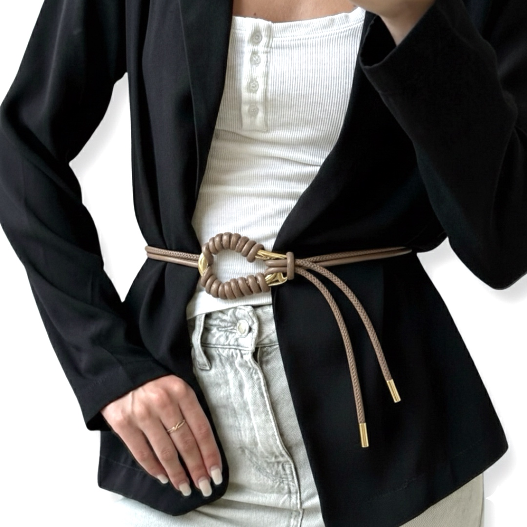 חגורת קשירה מעוצבת ואלגנטית עם אבזם זהב צבע טאופ ליאלב