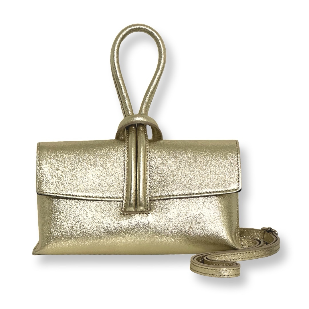 תיק ערב/קלאץ' עור לולאה מטאלי זהב ליאלב