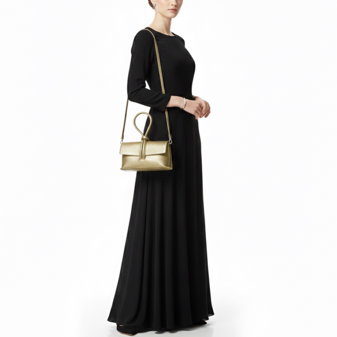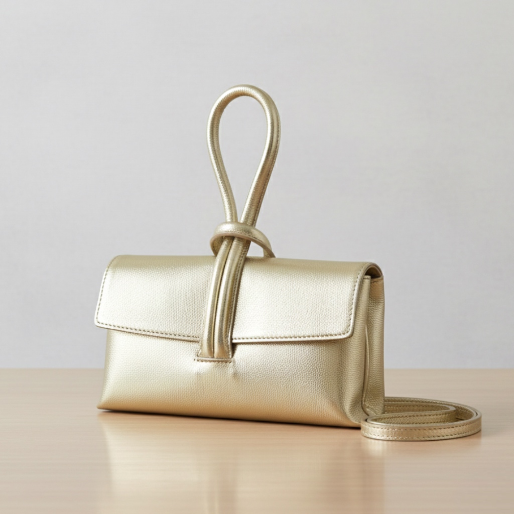 - תיק ערב/קלאץ' עור לולאה מטאלי זהב ליאלב