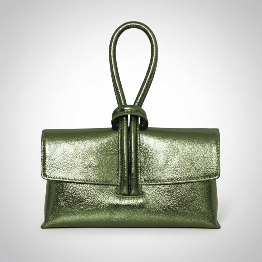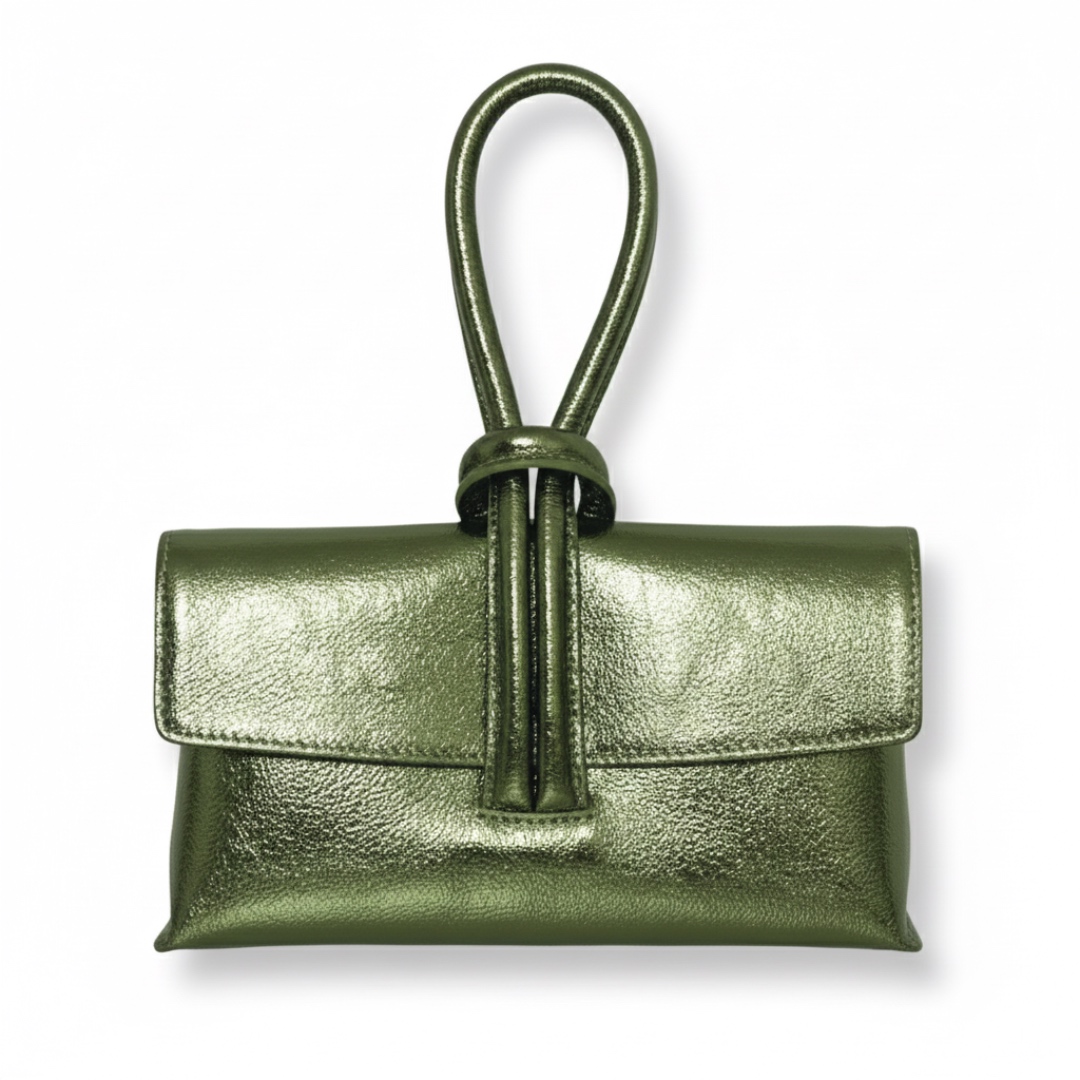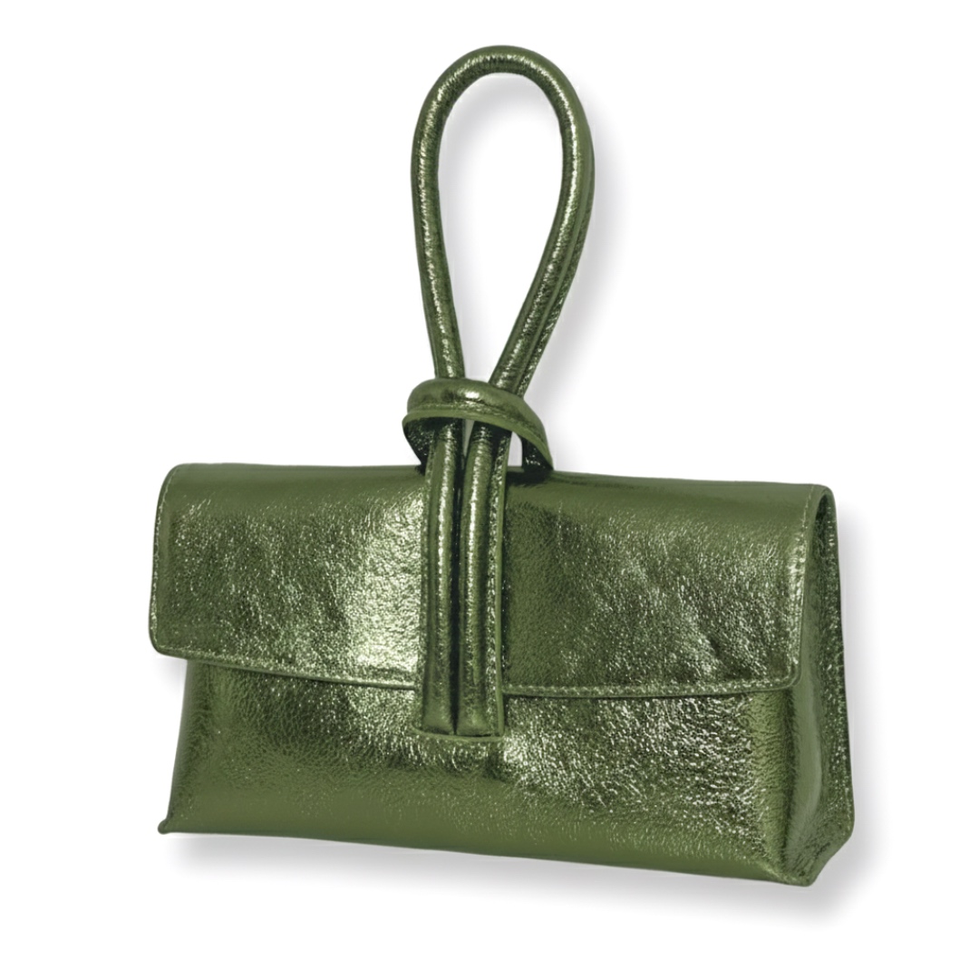 תיק ערב/קלאץ' עור לולאה מטאלי ירוק/זהב ליאלב