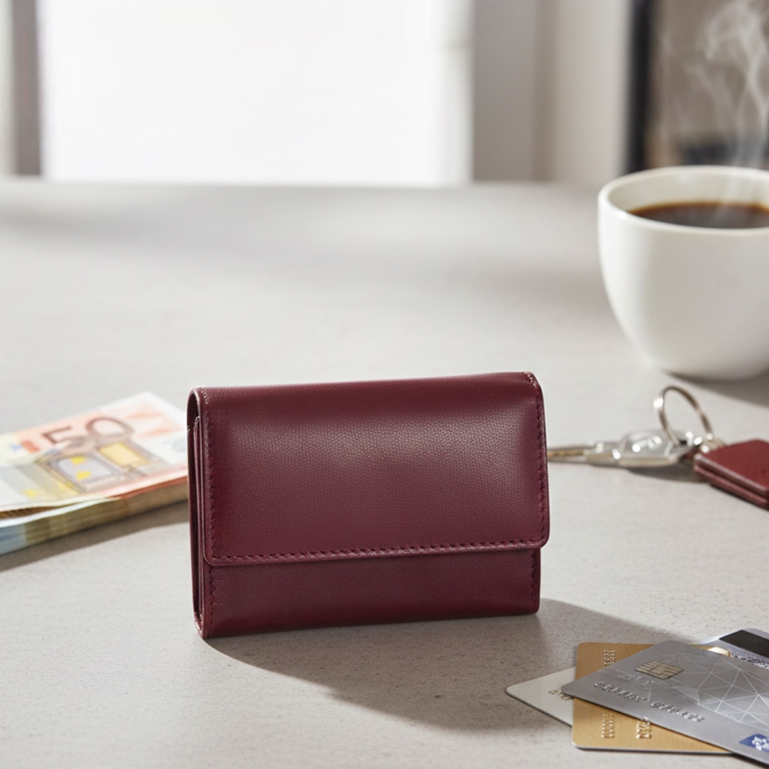 - ארנק מיני מעור בורדו יוקרתי ליאלב