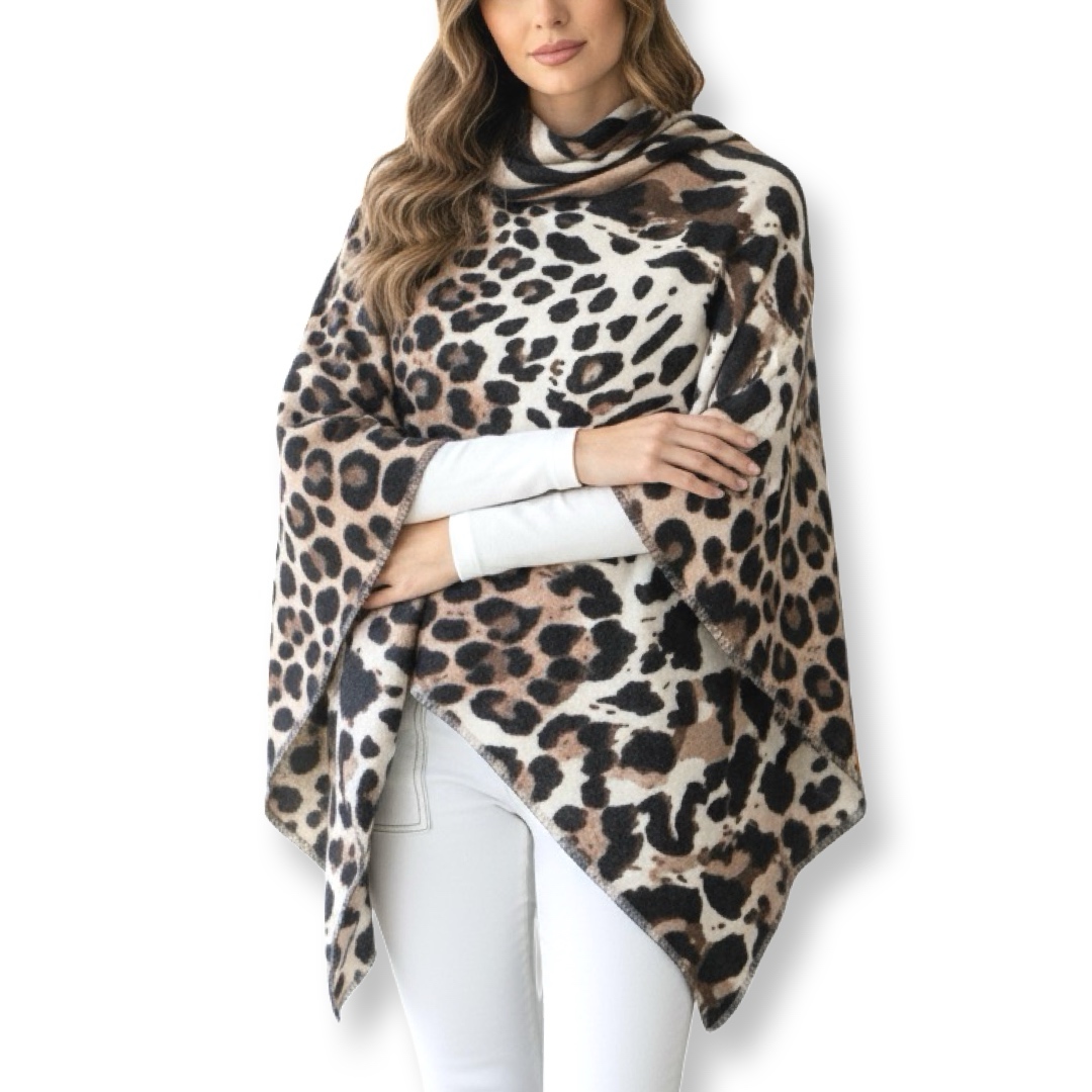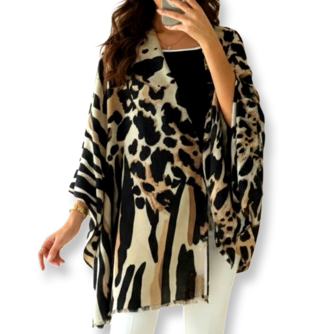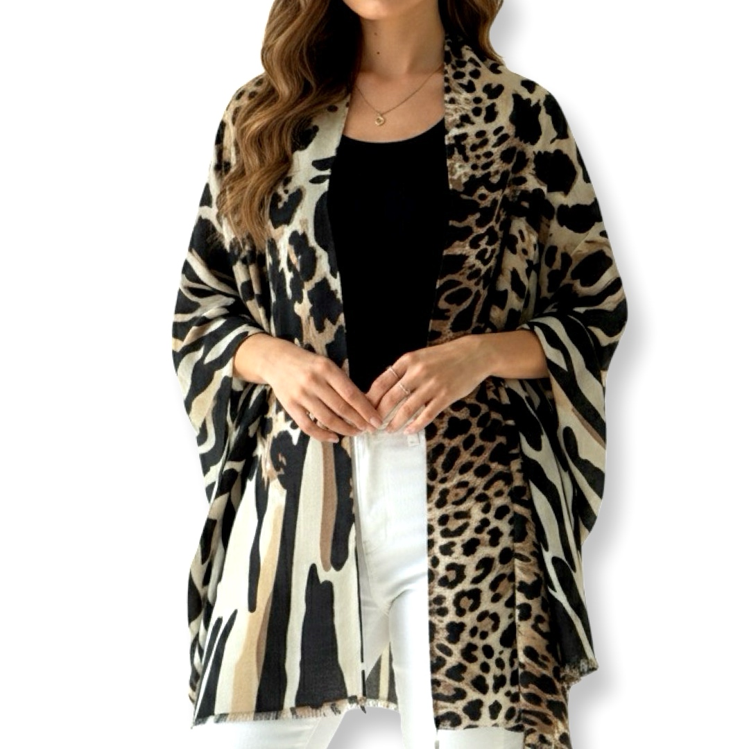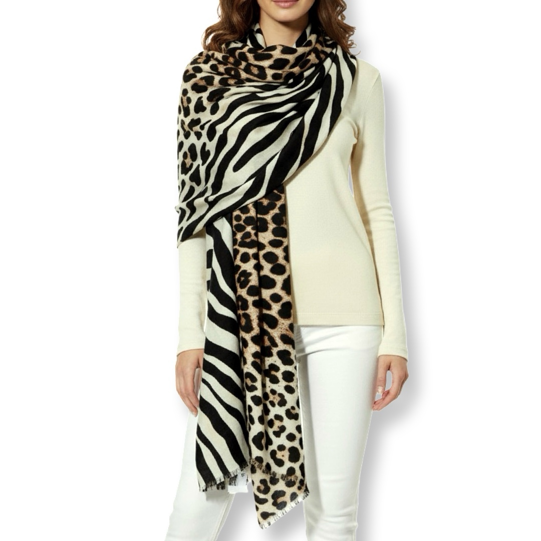 צעיף/שאל גדול זברה-נמר דוצדדי יוקרתי בגווני בז׳ קיארה