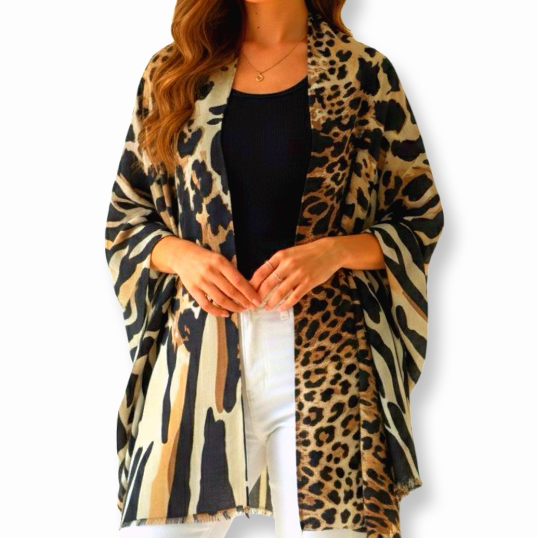 Luna-Chiara | צעיף/שאל גדול זברה-נמר דוצדדי יוקרתי בגווני חום קיארה