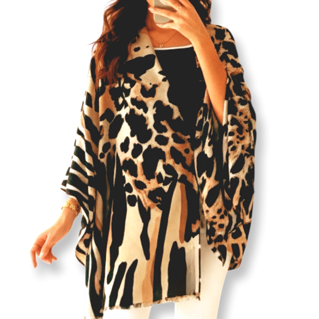 • צעיף/שאל גדול זברה-נמר דוצדדי יוקרתי בגווני חום קיארה
