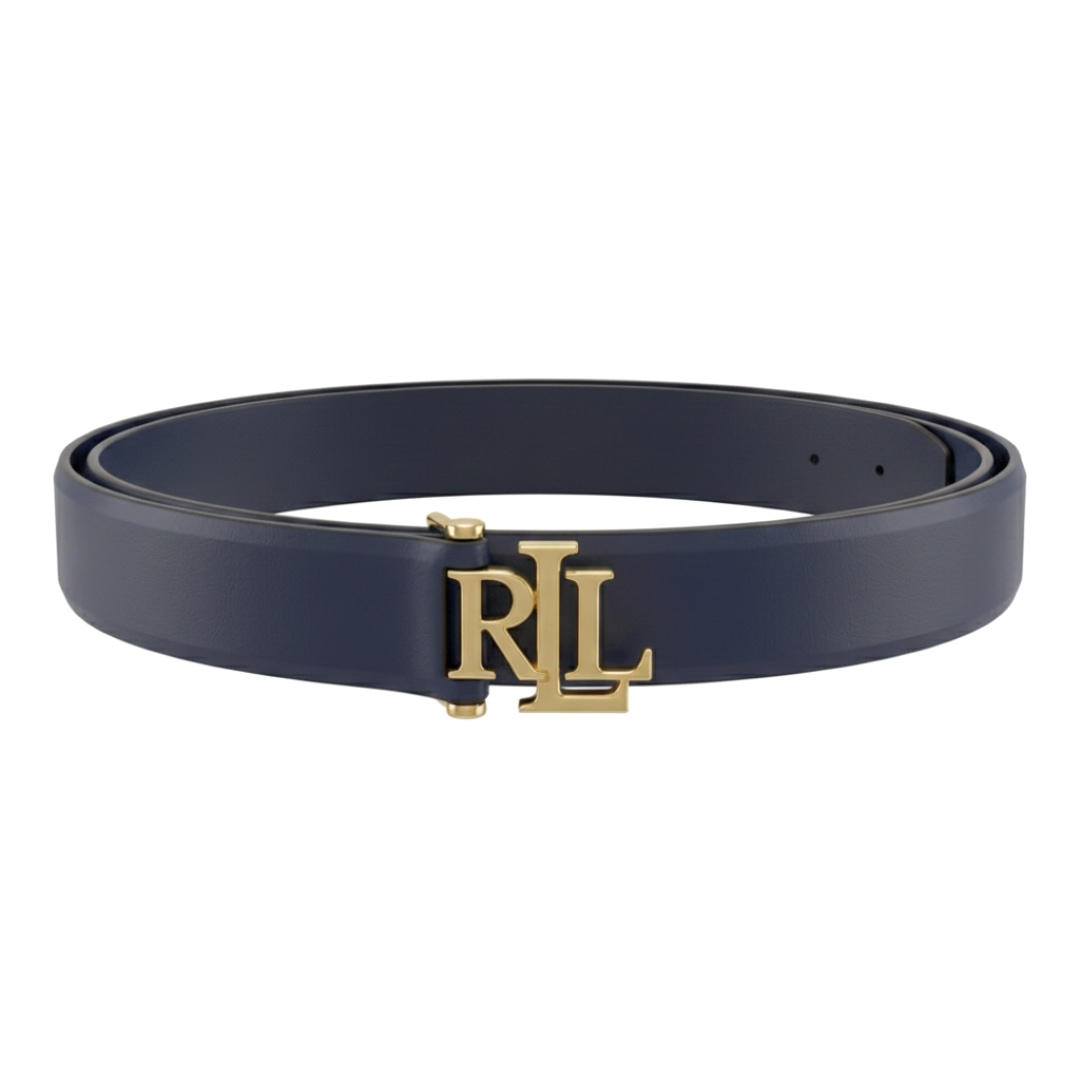 - ” חגורת עור אבזם לוגו קלאסית כחולה מבית האופנה ” ראלף לורן