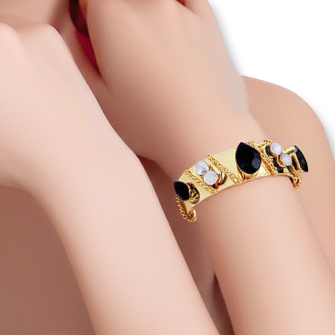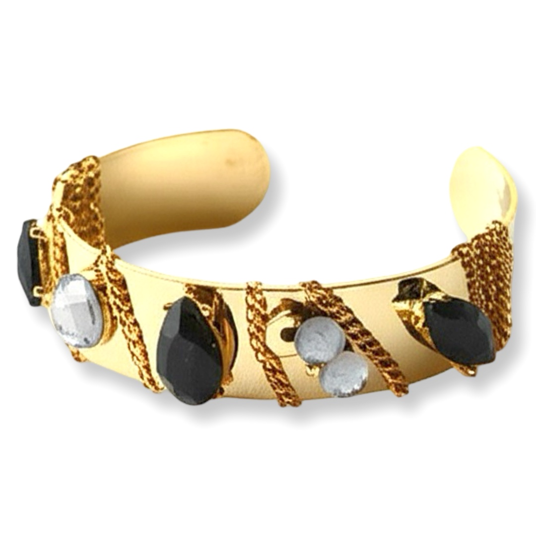 - משובץ בחלקי קריסטל נוצצים בצבע שחור ואפור