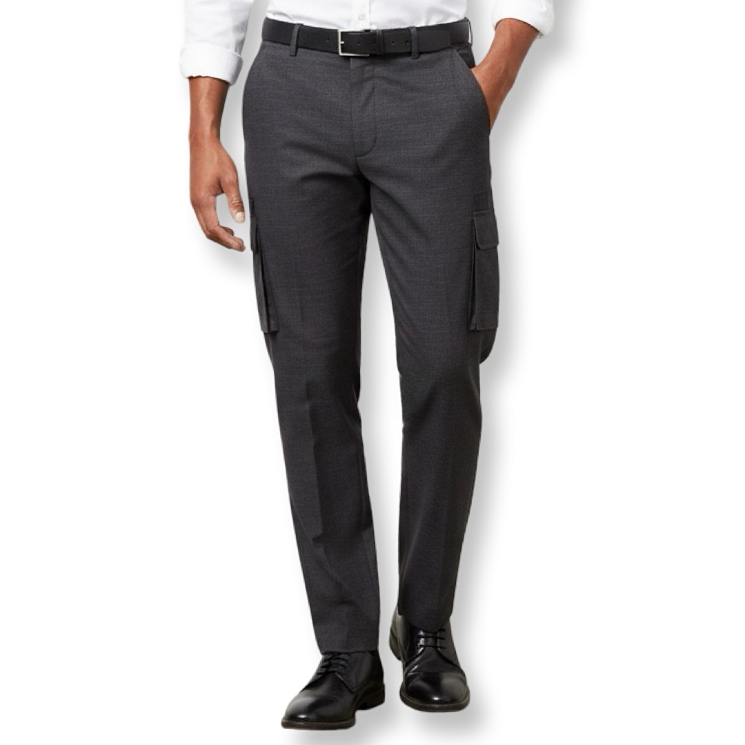 - מכנסי קרגו אופנתיים בגזרת סלים-פיט ובצבע אפור