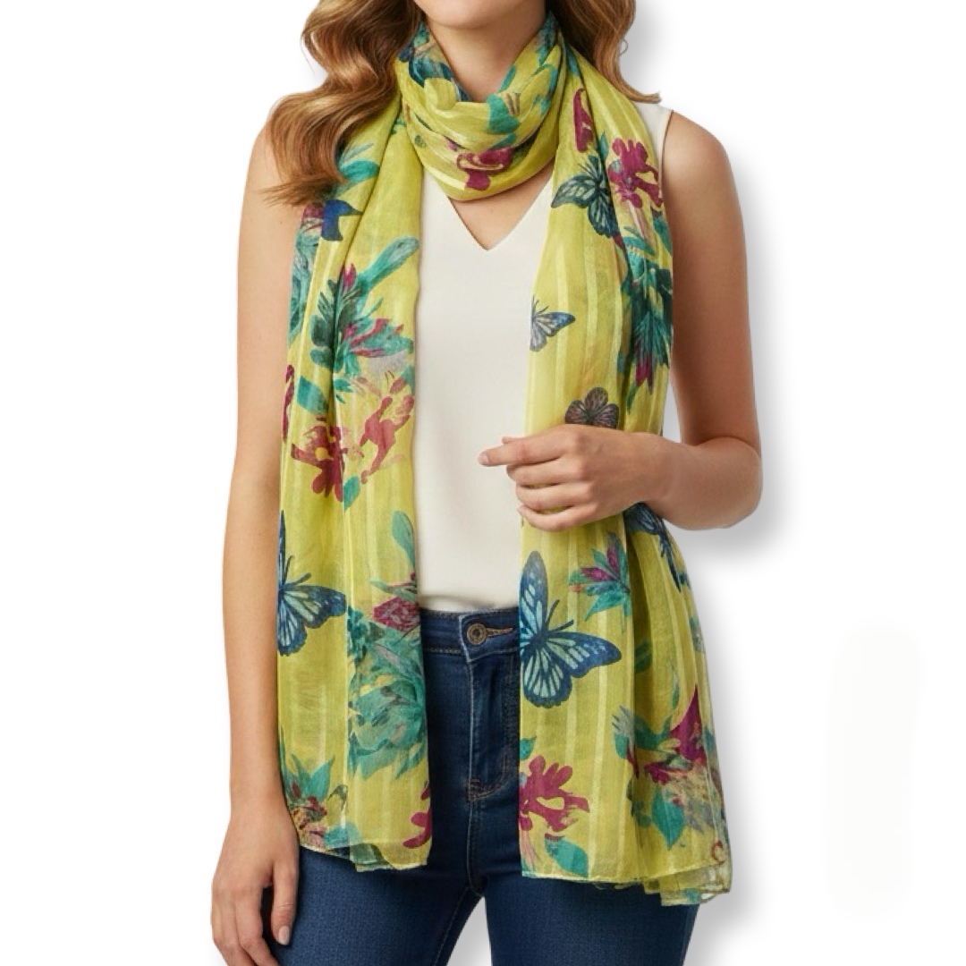 צעיף ירוק בהיר פרחוני