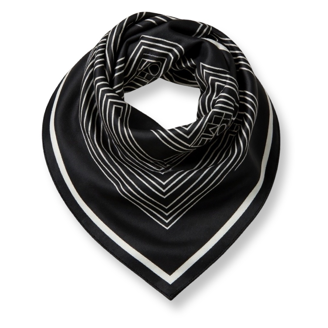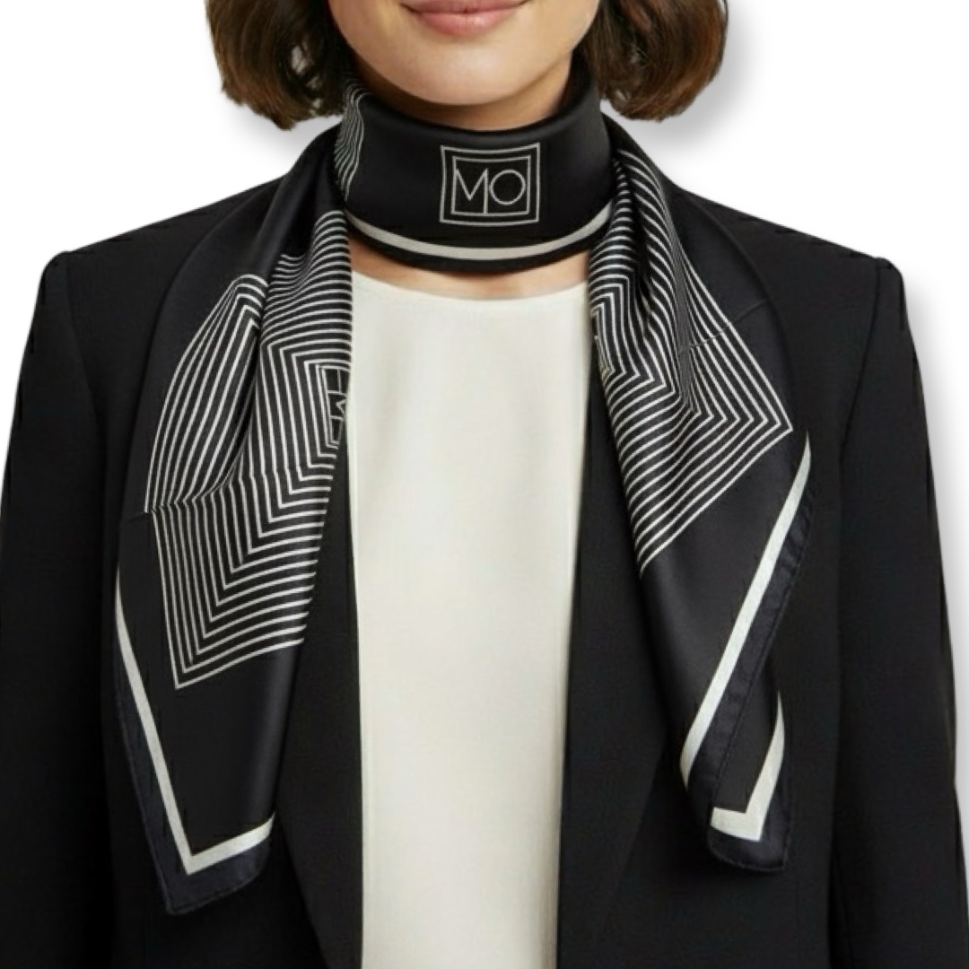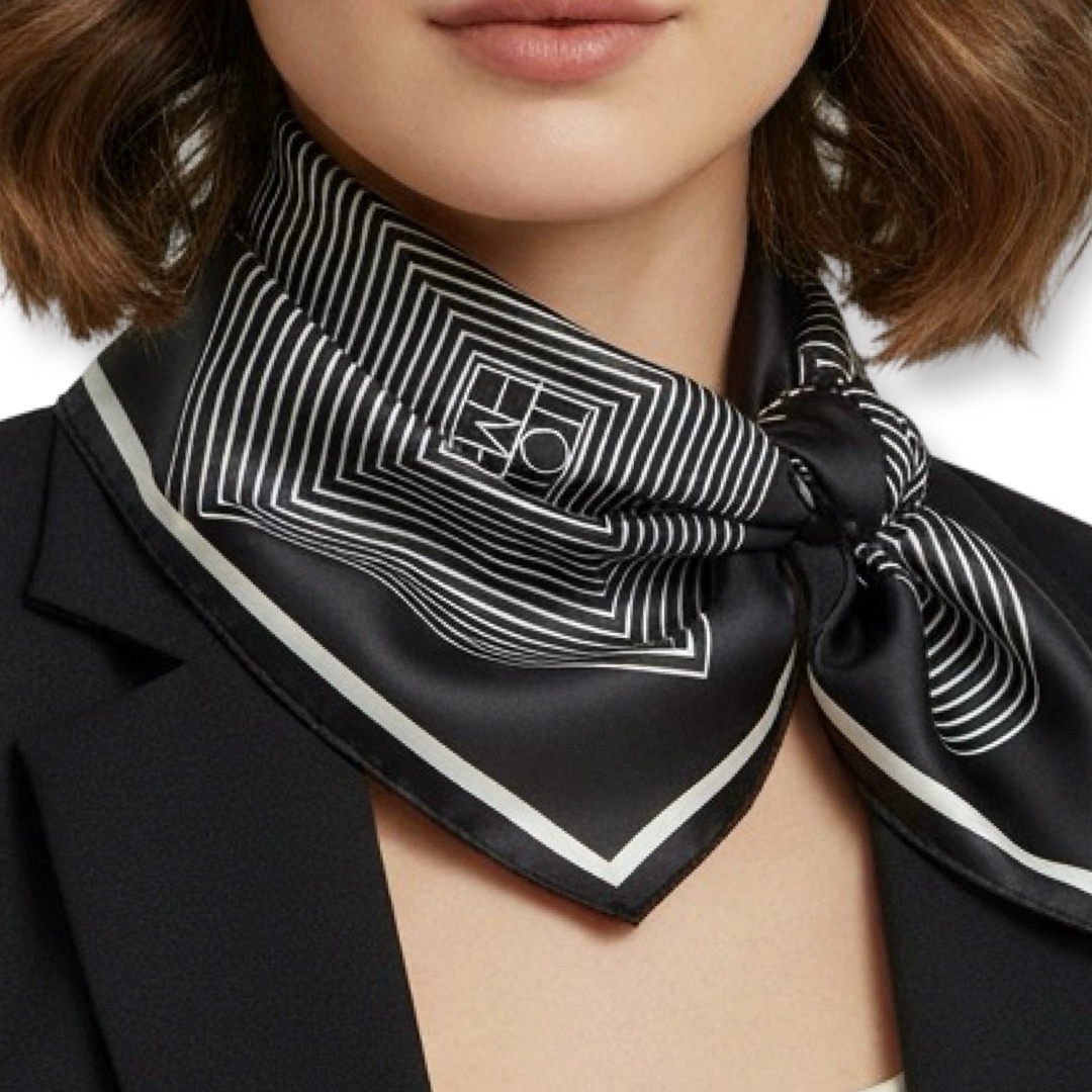 צעיף משי אבסטרקט שחור עם מסגרת אופוויט סטה