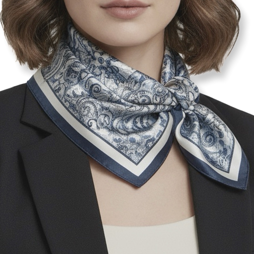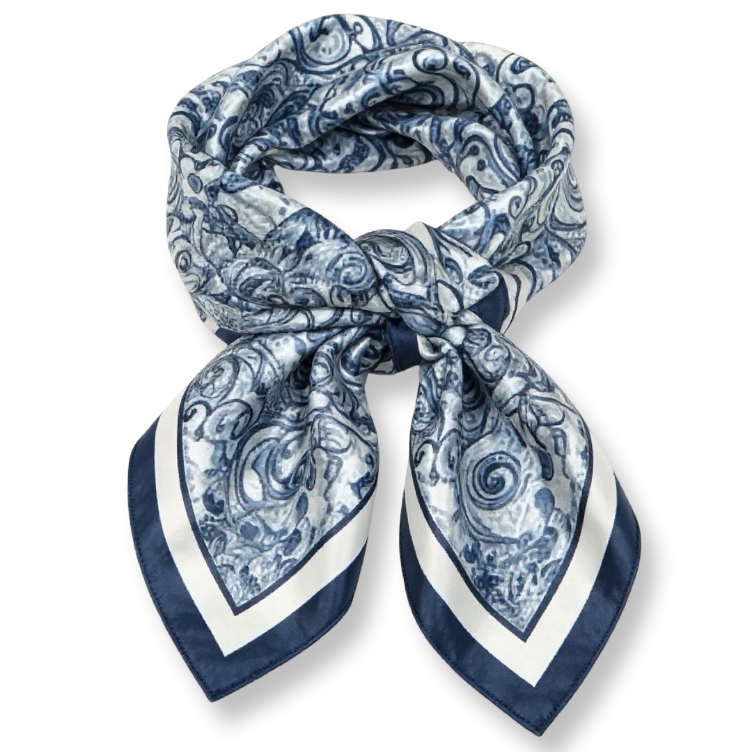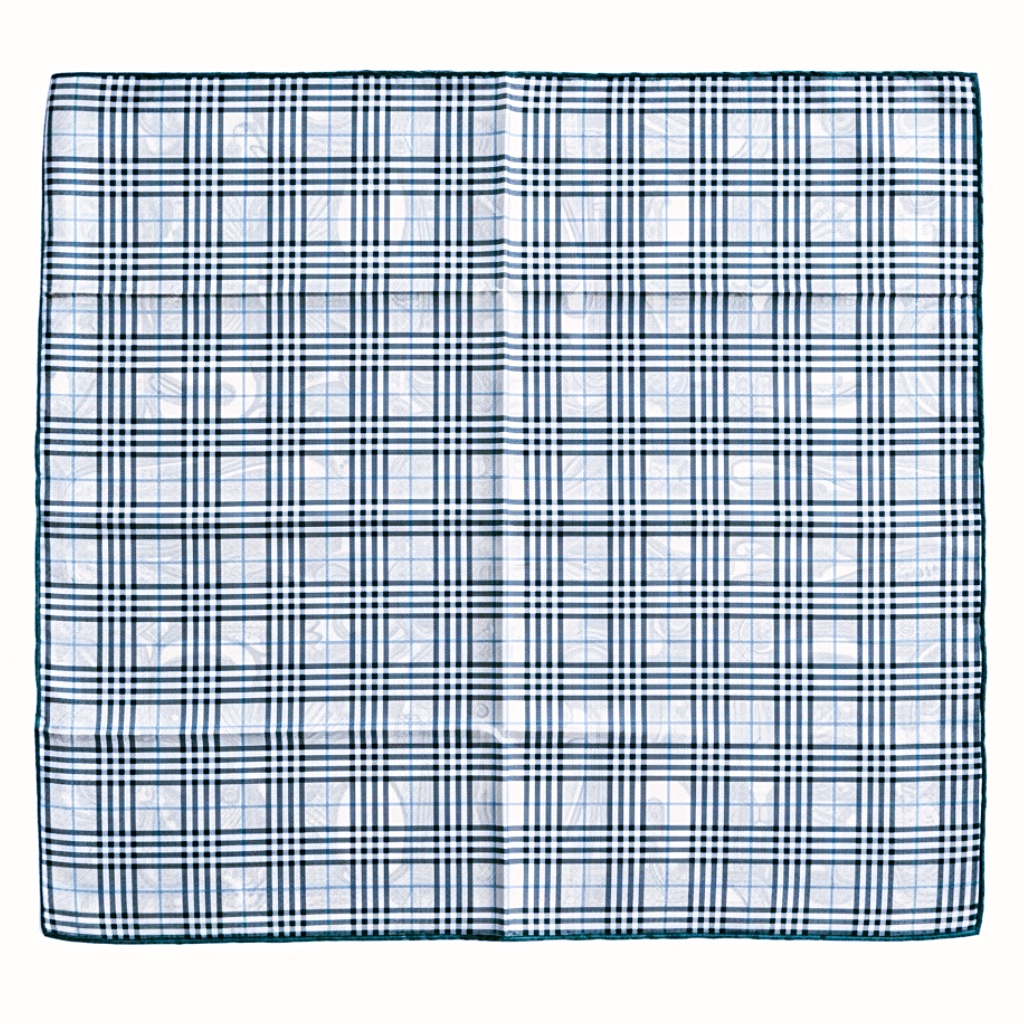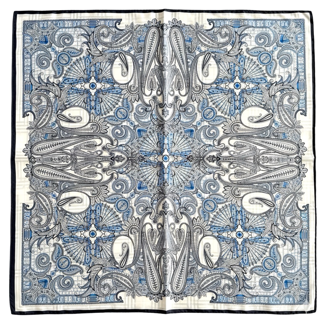 צעיף משי דו-צדדי פייזלי ומשבצות כחול סטה