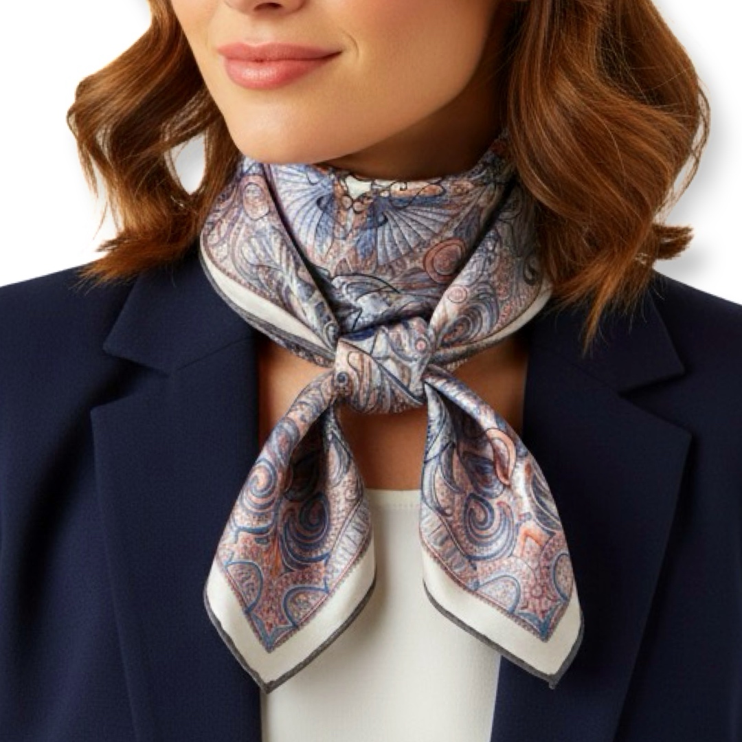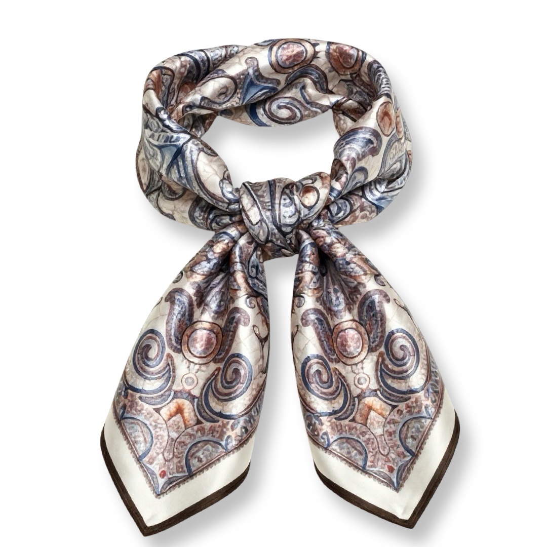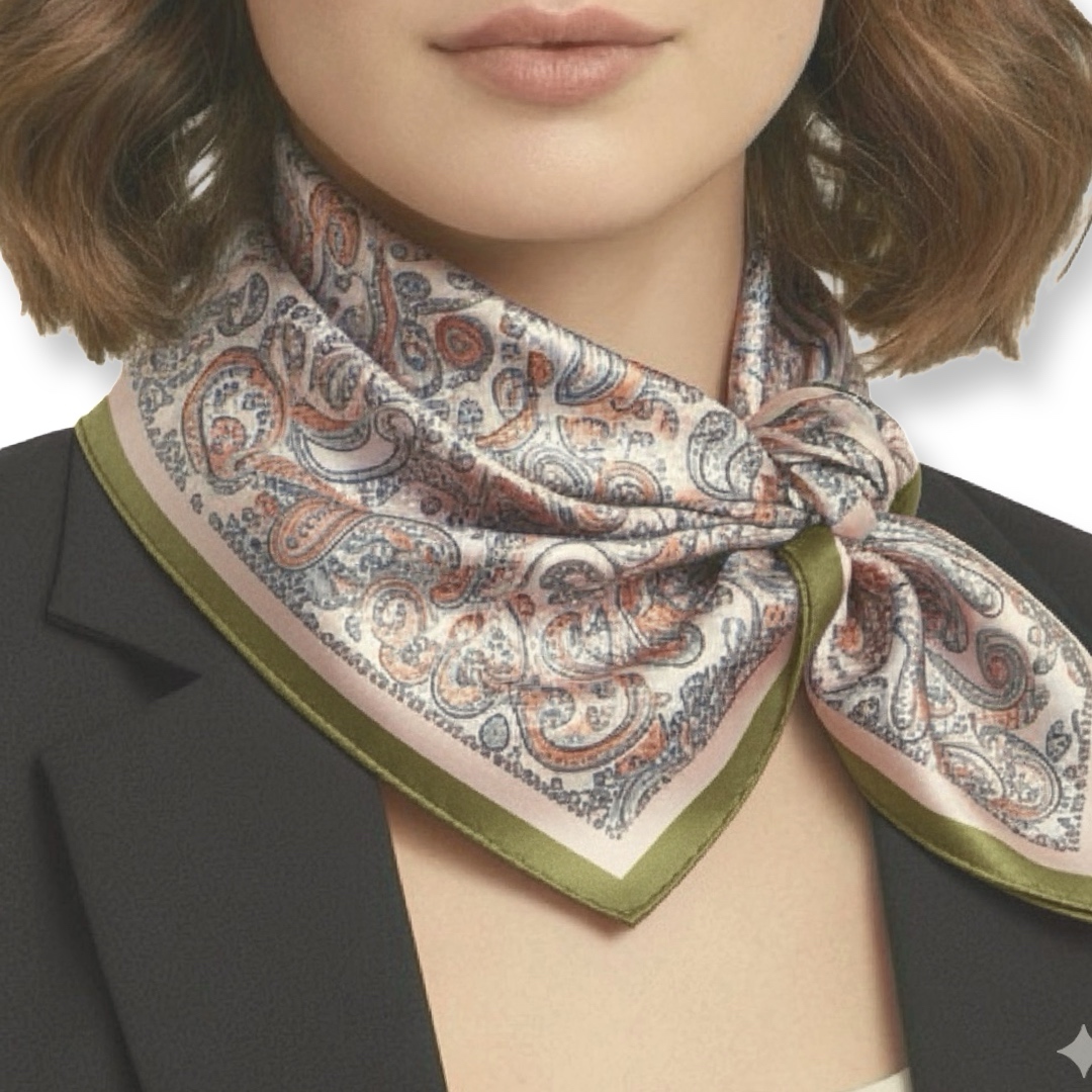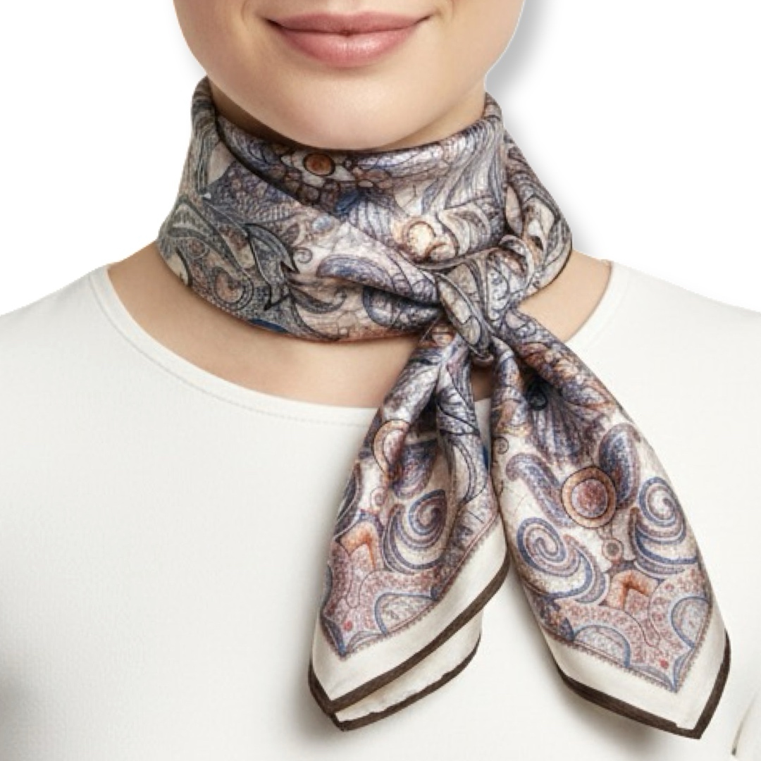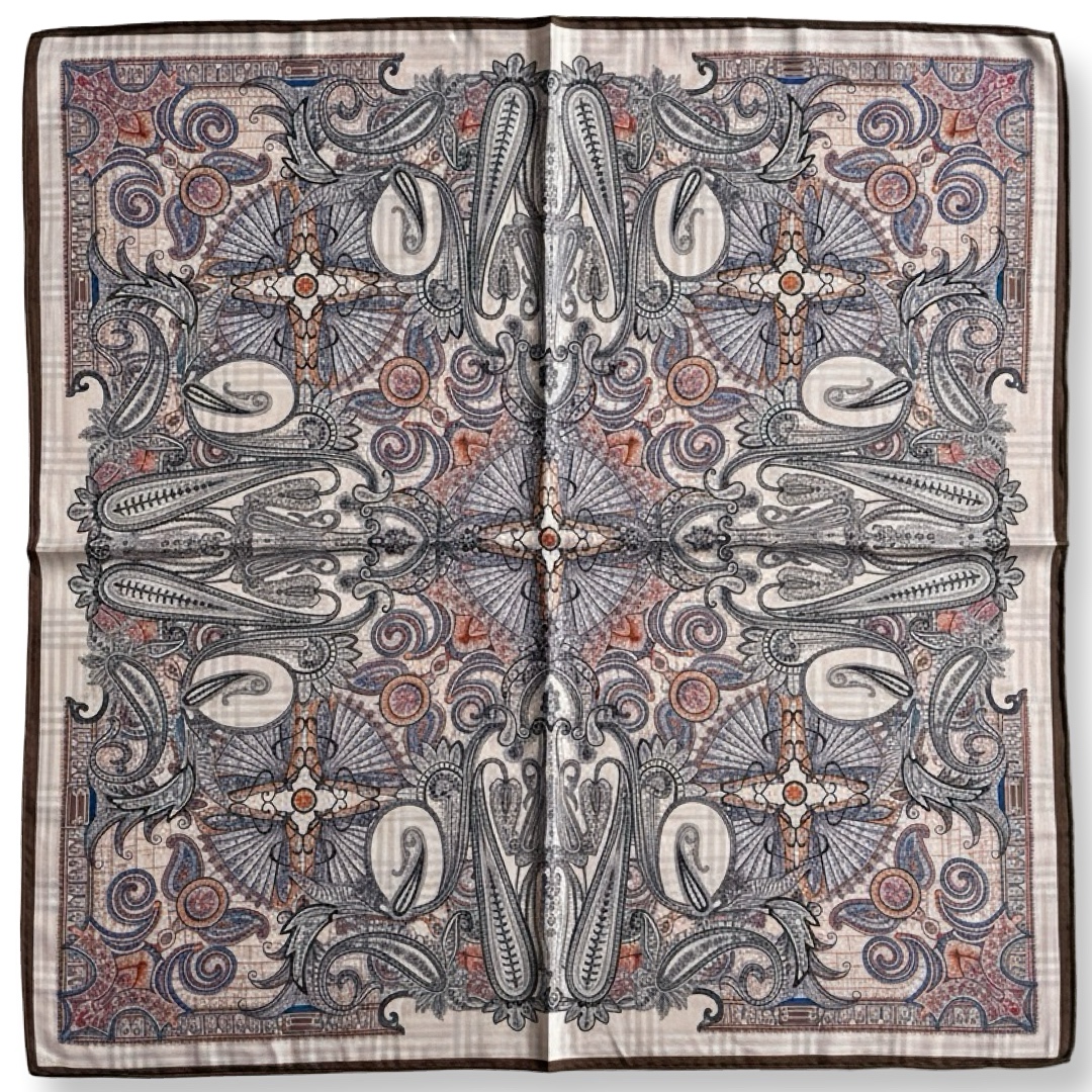 צעיף משי דו-צדדי פייזלי ומשבצות צבעוני סטה