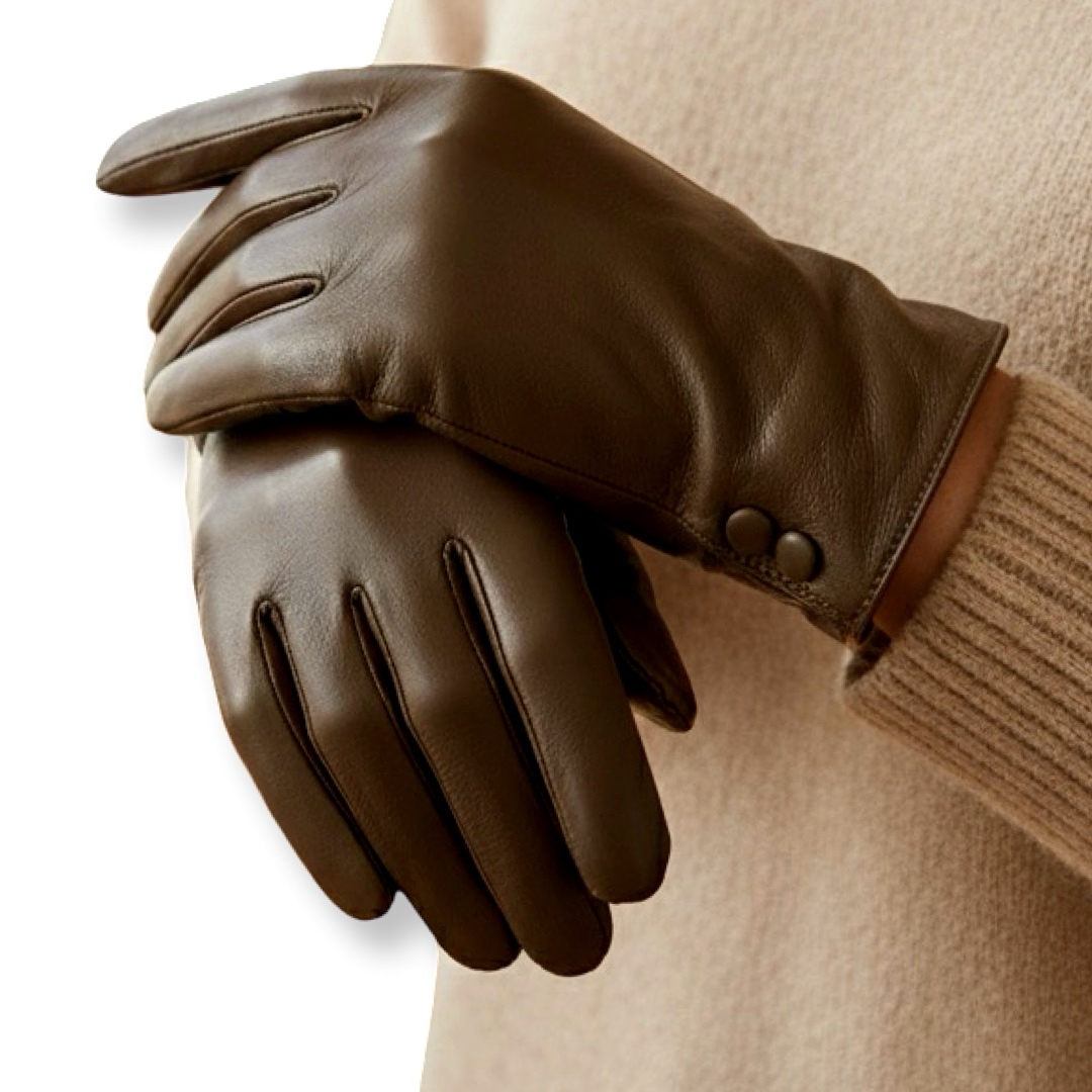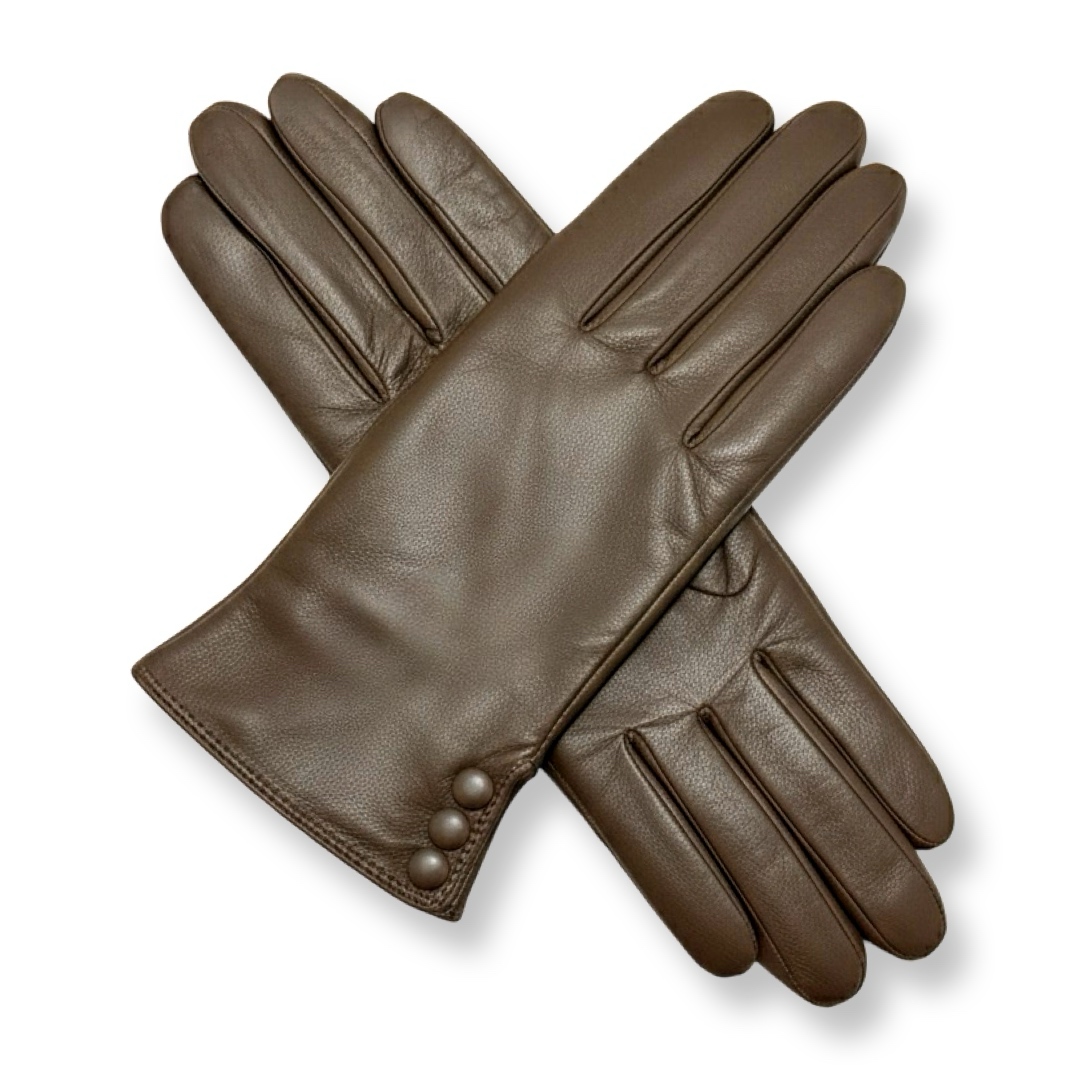 כפפות עור אלגנטיות "מארסלה" עם כפתורים צבע חום סי אנד ג׳י