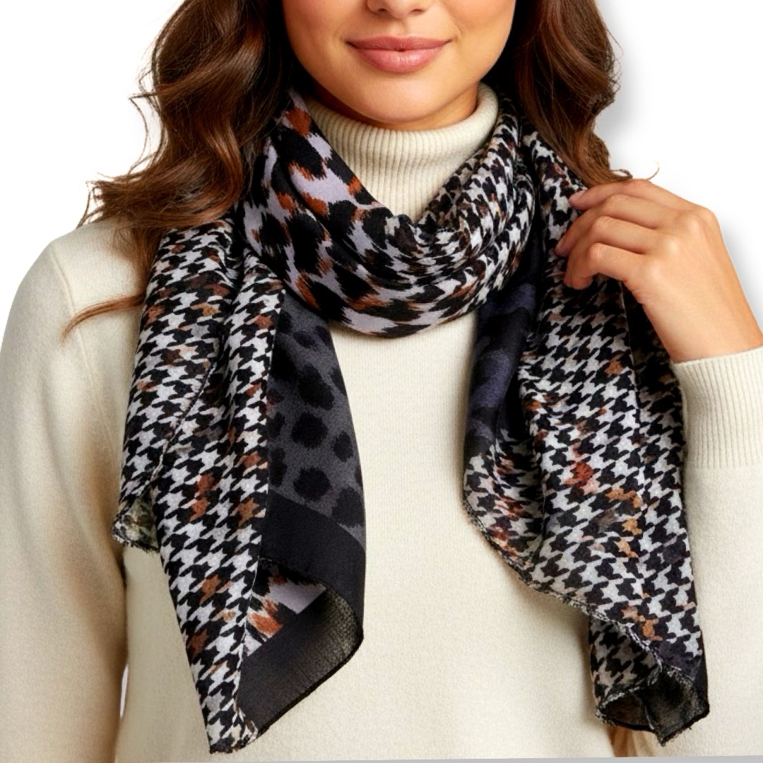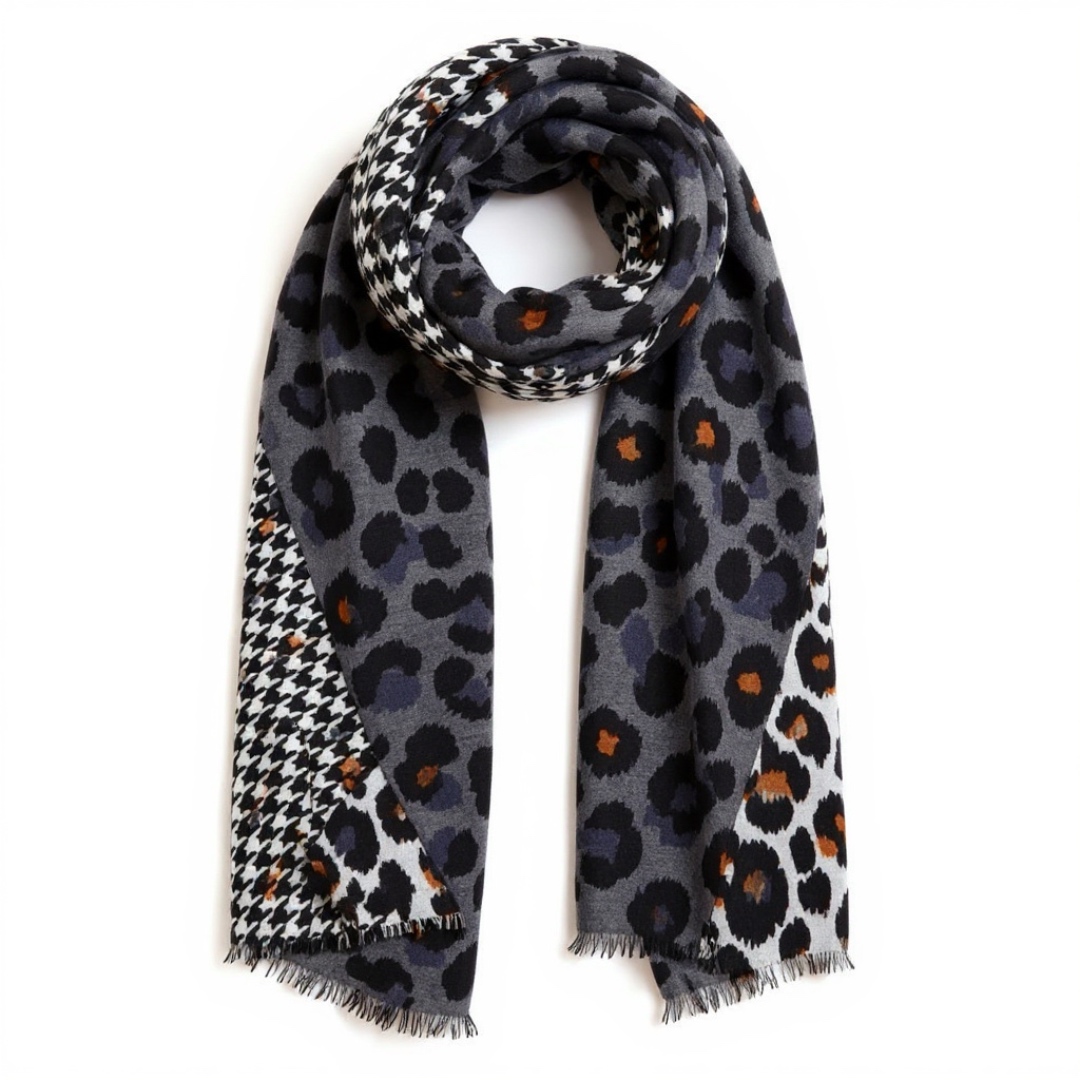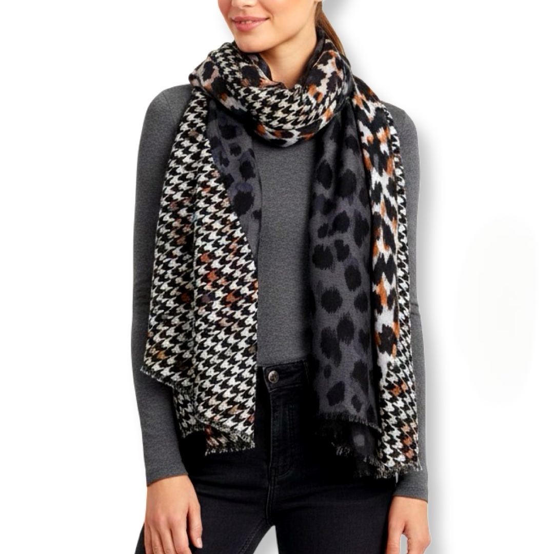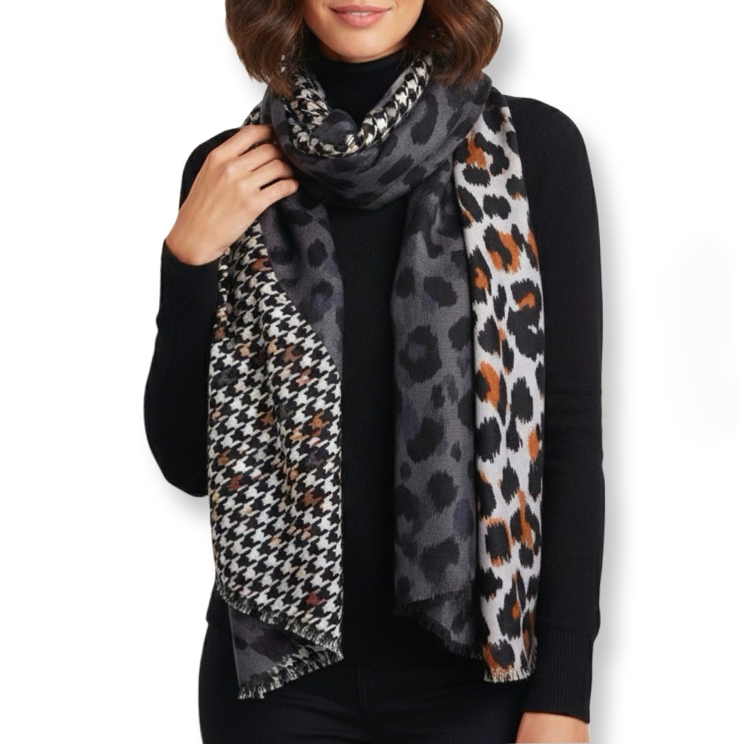 צעיף מנומר-פפיטה גדול שחור חום אפור וונדה