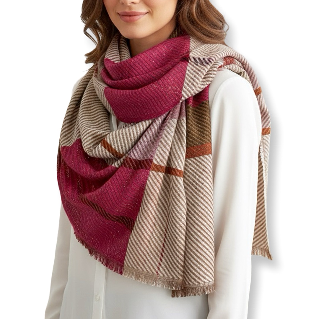 צעיף גדול מנצנץ יוקרתי חום/סגול וינס קמוטו