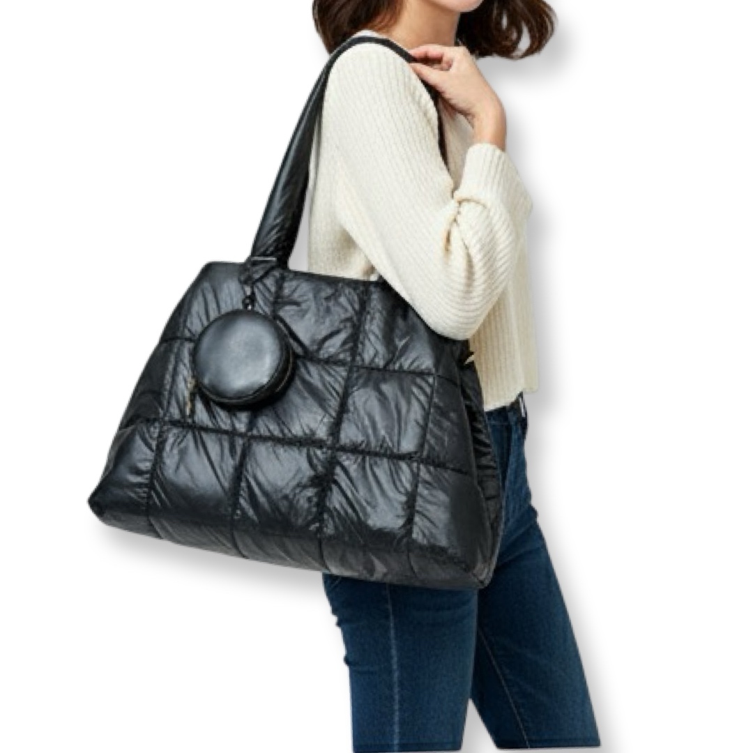 תיק גדול פאפר מרופד מבד ניילון צבע שחור ויויאן